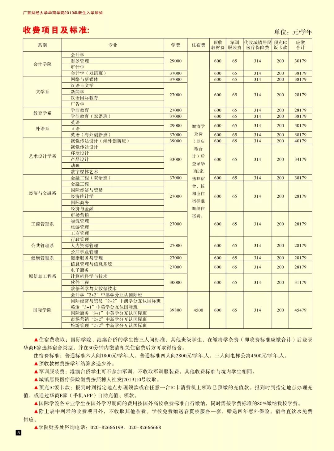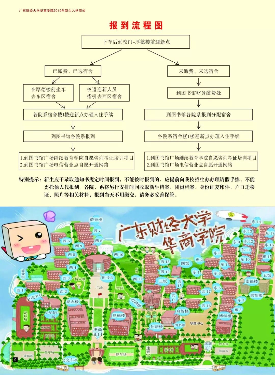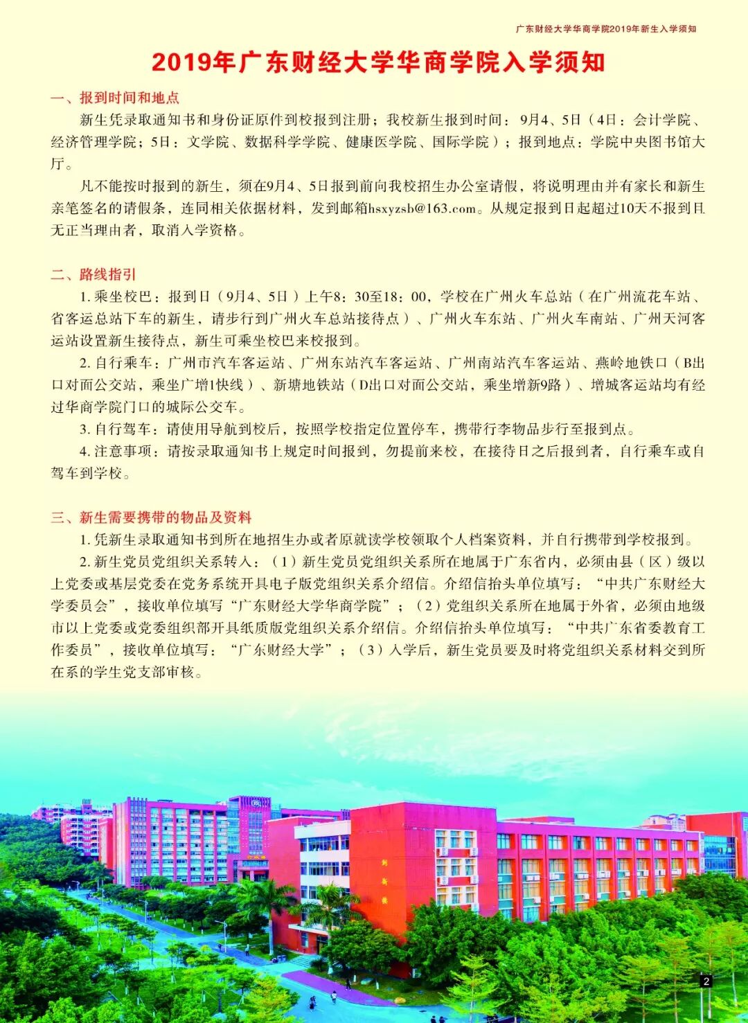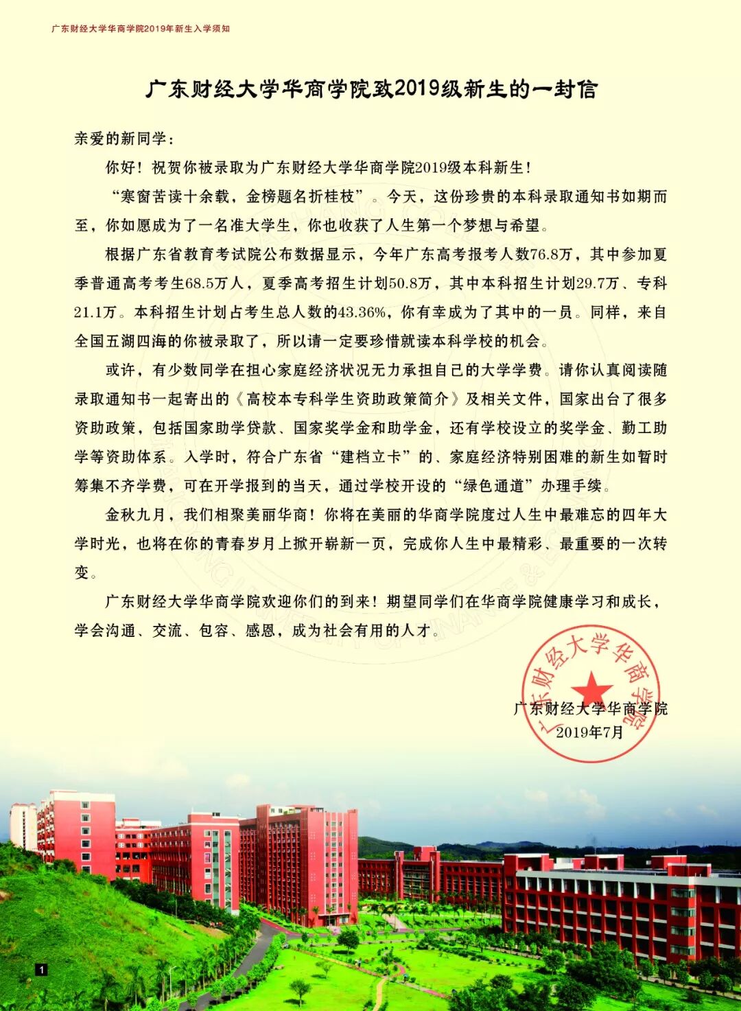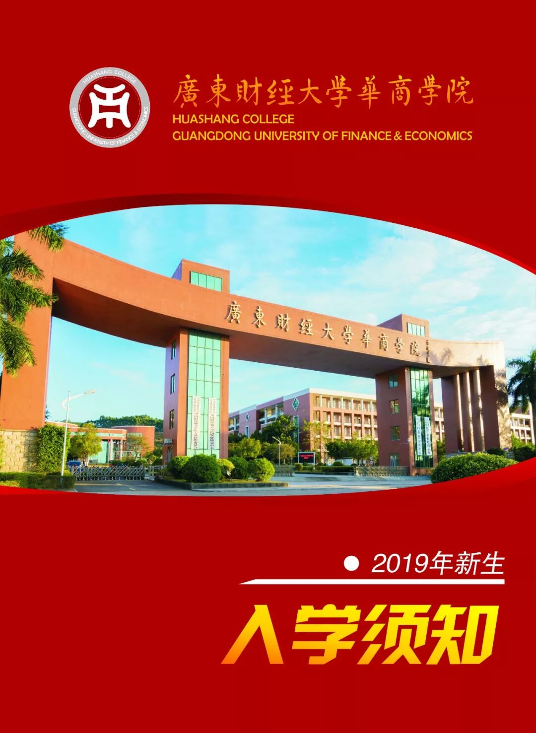 广东财经大学华商学院2019年新生录取通知书邮寄专用信封内有以下资料: