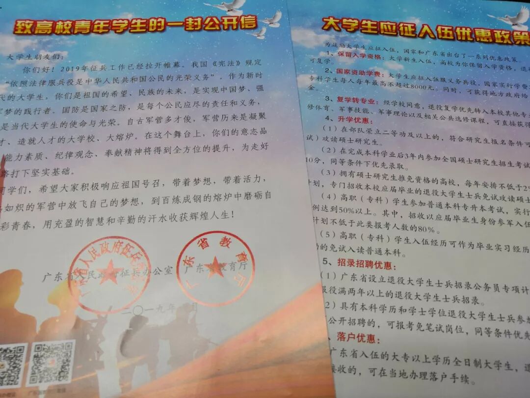 大学新生应征入伍宣传资料:2份