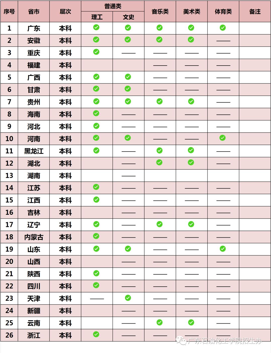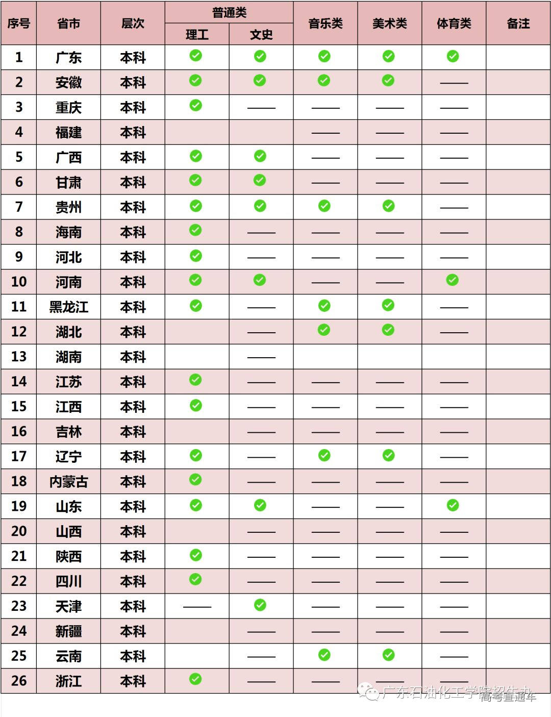 “✔”表示可以查询;“——”表示无此录取科类;空白表示还未更新数据库,暂不能查询。