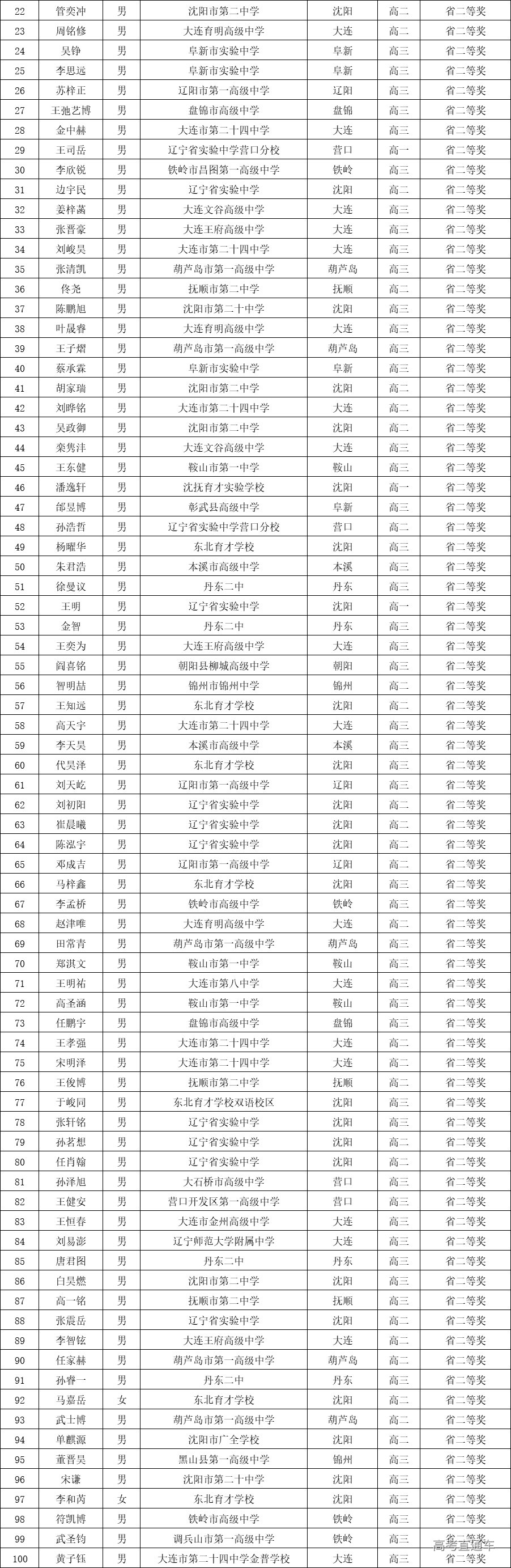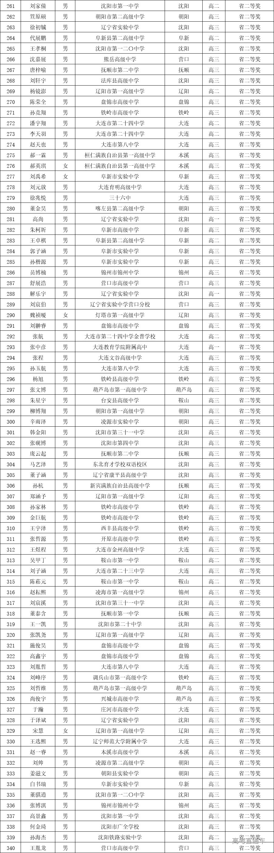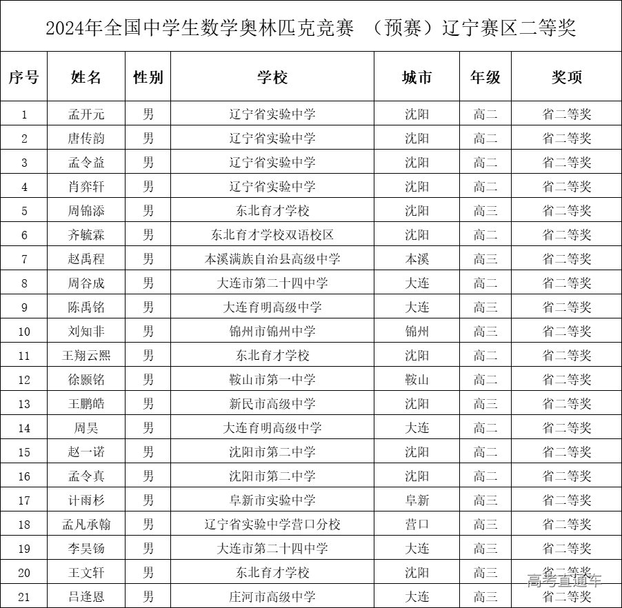2024年第40届全国中学生数学联赛省二名单(辽宁)
