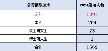 共计录用1569人。与招聘公告录用计划(详见附录)1569人完全一致。