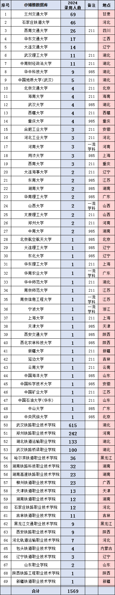 根据中国铁路武汉局集团有限公司2024年度招聘普通高校毕业生拟录用人员名单公示,