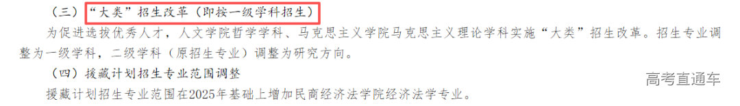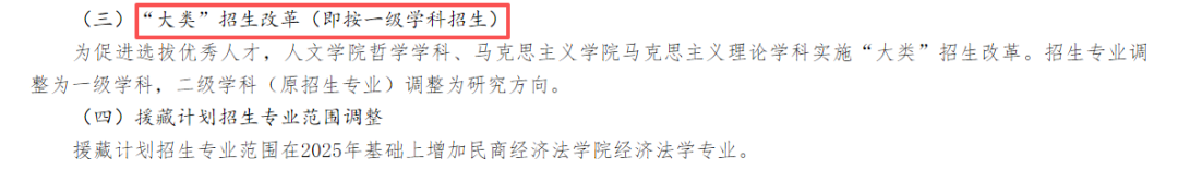 近日,中国政法大学宣布调整2026年硕士研究生招生专业,哲学、马克思主义理论学科实施“大类”招生改革——招生专业调整为一级学科招生,原12个招生专业(二级学科)调整为研究方向。早在去年,中国政法大学政治与公共管理学院、商学院、社会学院、光明新闻传播学院便已实施“大类”招生改革,取消二级学科招生。