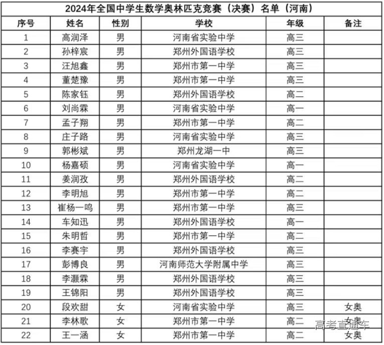 2024年第40届全国中学生数学联赛省队名单(河南)