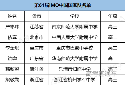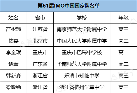 6名国家队队员将于9月21日至22日通过网络参加第61届IMO,预祝中国队取得优异的成绩!