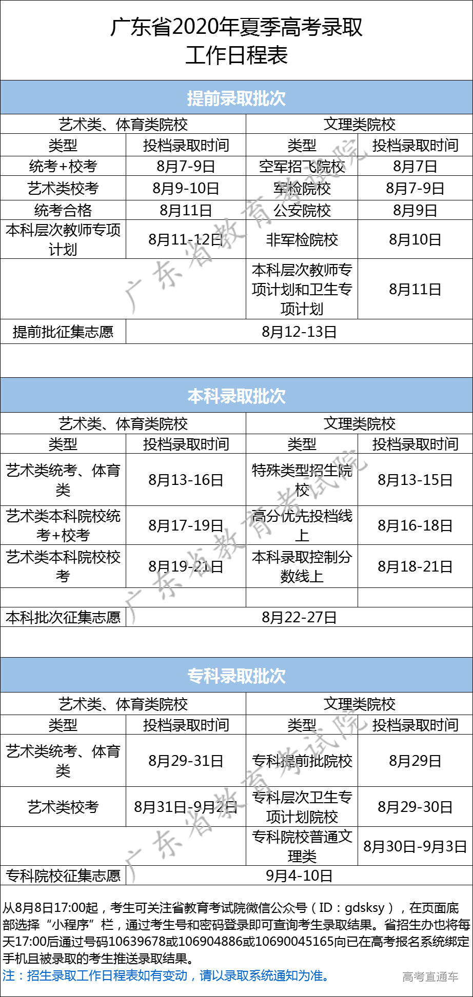 2020年广东高考录取工作 正在有序进行中 什么时候有录取结果? 如何不错过征集志愿的填报? 小编为正在等待录取结果的你 整理了一份简要版的录取时间日程表 快快收藏好!