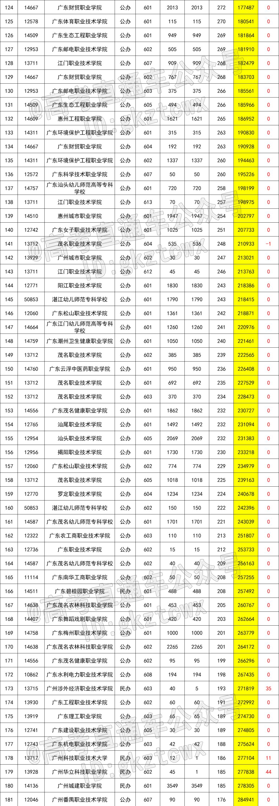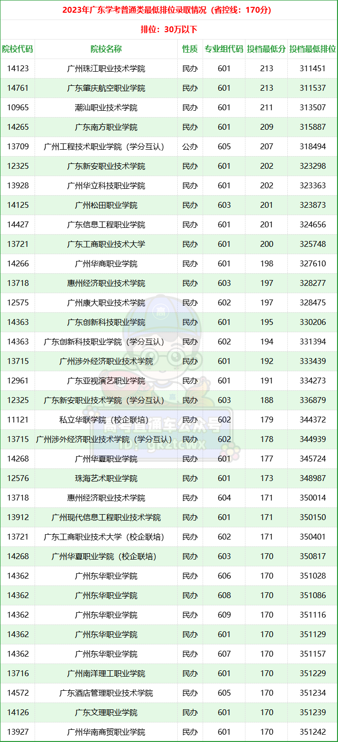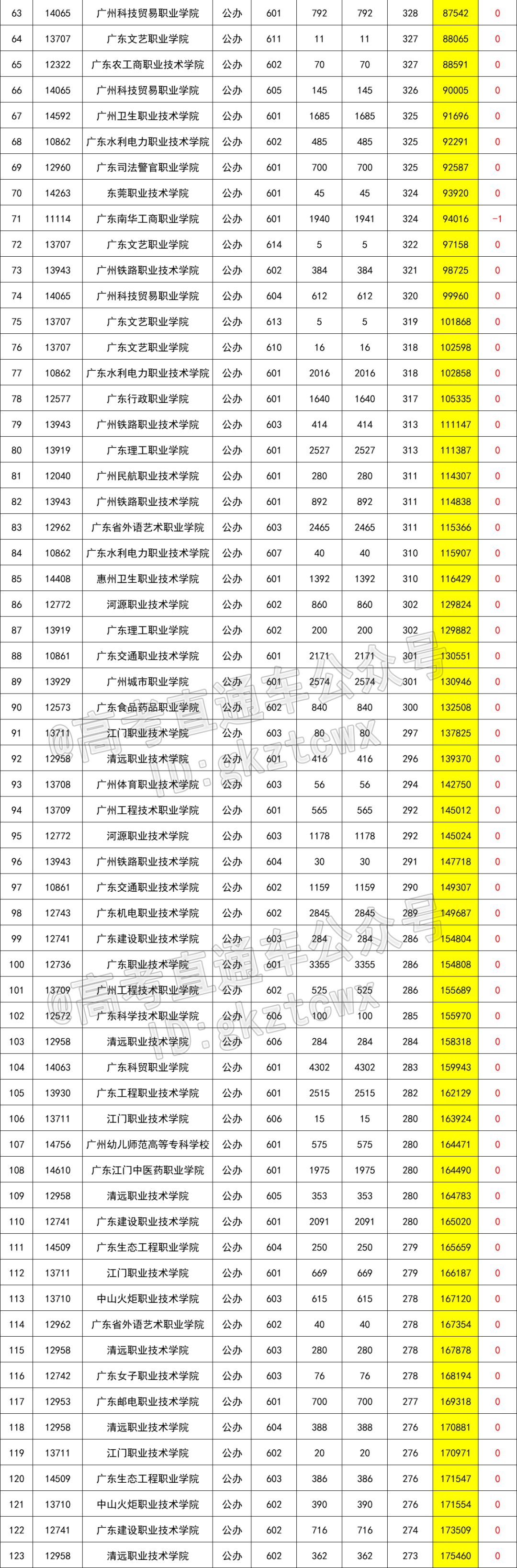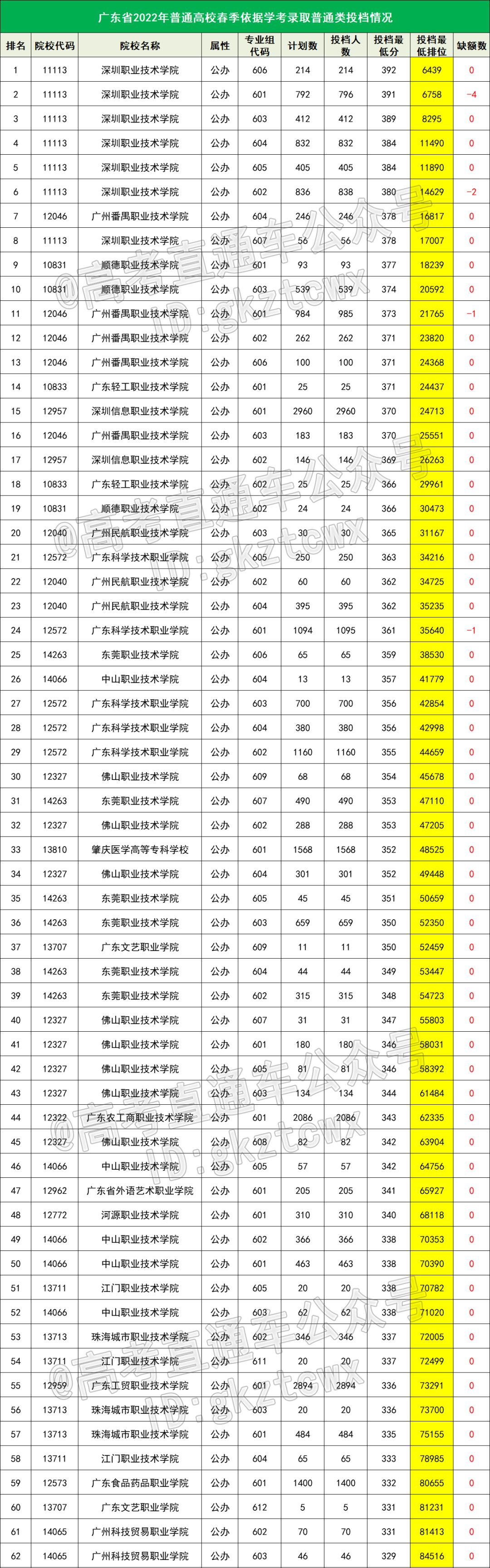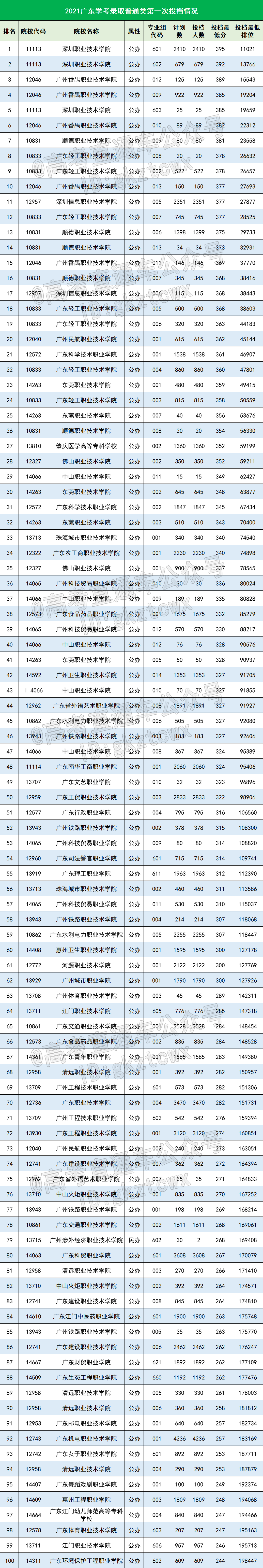 2021年由于政策改革,学考总分由300分改为450分,所以大部分院校专业组最低投档分数线对比往年院校最低投档分有所上升,深职等热门公办院校投档分基本都在300分以上。