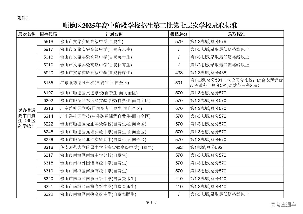 附件7:顺德区2025年高中阶段学校招生第二批第七层次学校录取标准.pdf