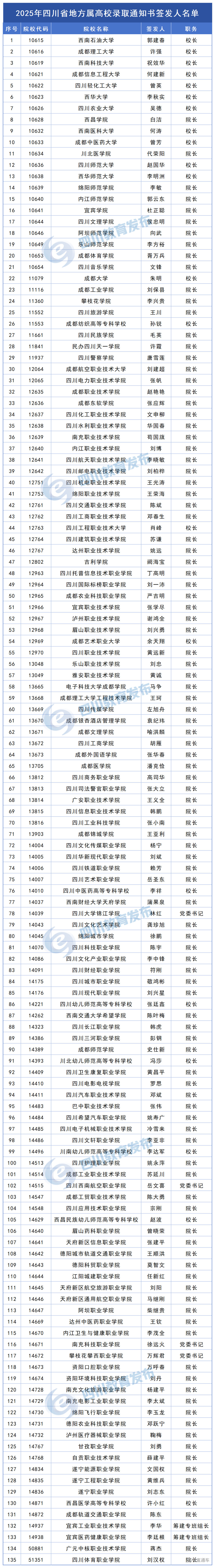 按照《教育部关于做好2025年普通高校招生工作的通知》(教学〔2025〕1号)要求,我省今年继续实行校长签发录取通知书制度,普通高校录取通知书除加盖高校校章外,还应由校(院)长或授权签发人签发,并对录取结果负责。现将我省具有普通高等教育招生资格的地方属高等学校录取通知书签发人名单汇总公布如下(共135所,名单附后)。