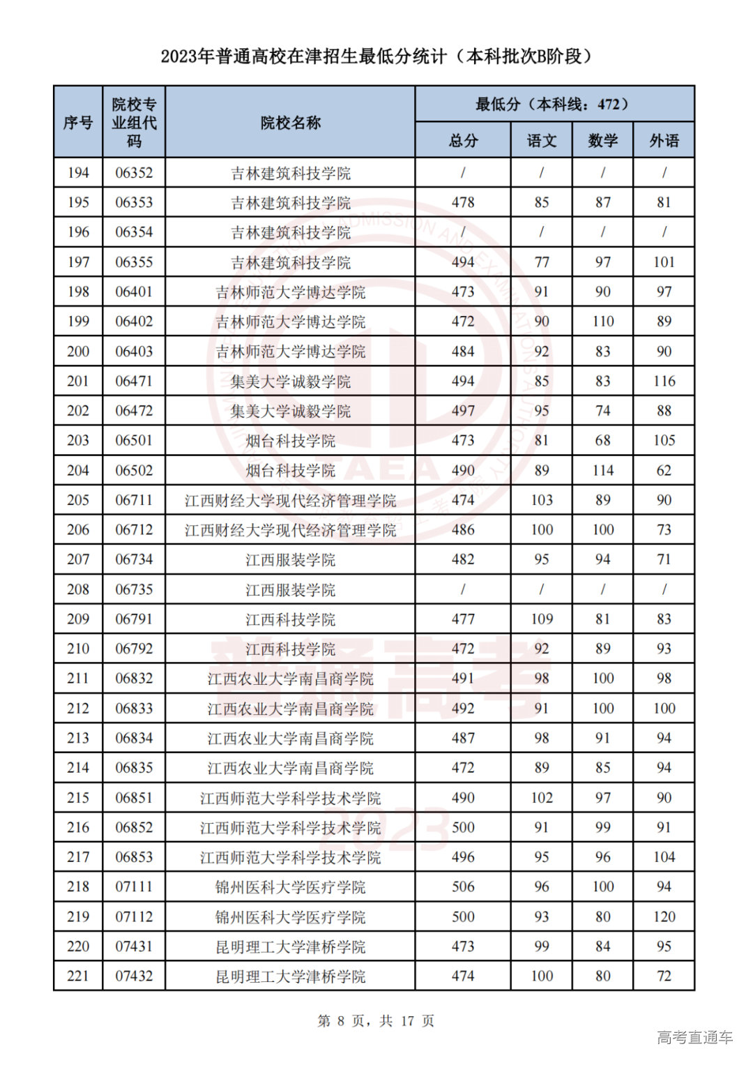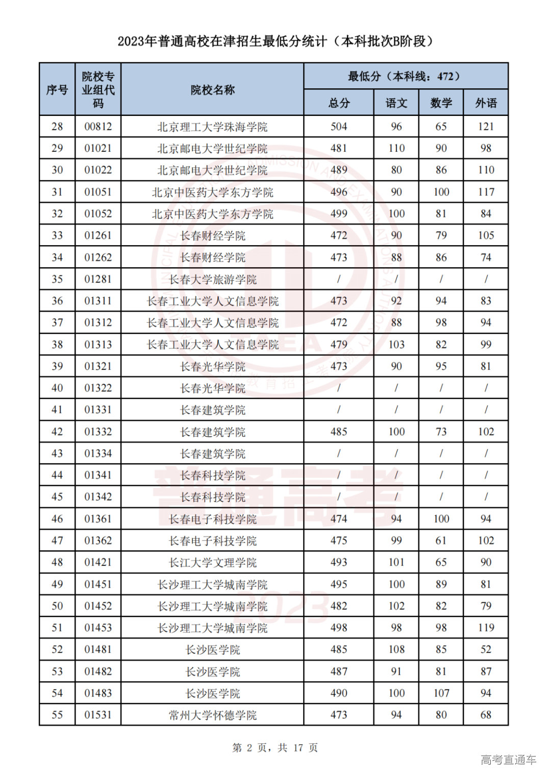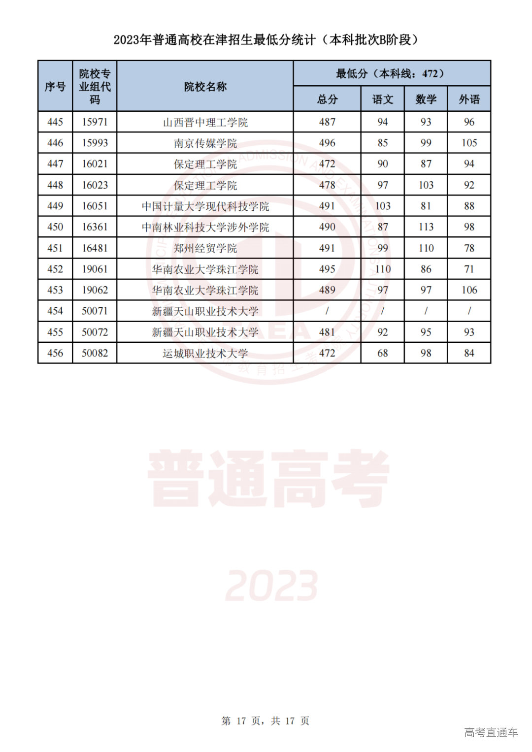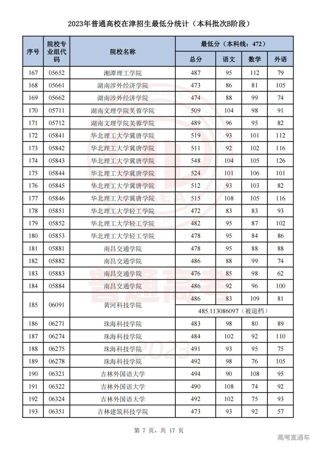 推荐阅读:天津2023年普通类本科批次A阶段各院校专业组录取最低分