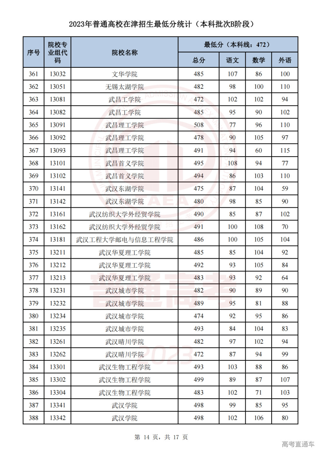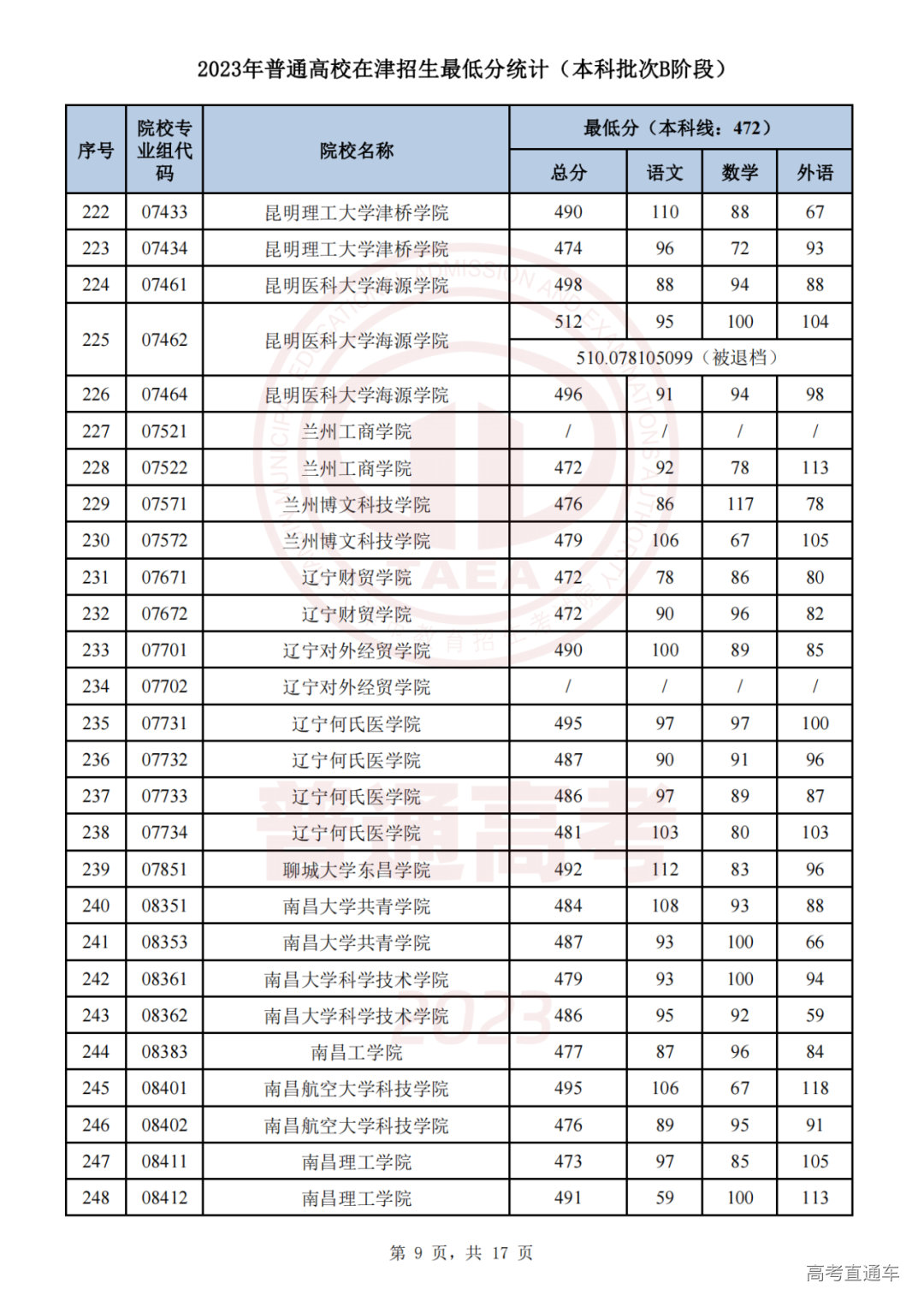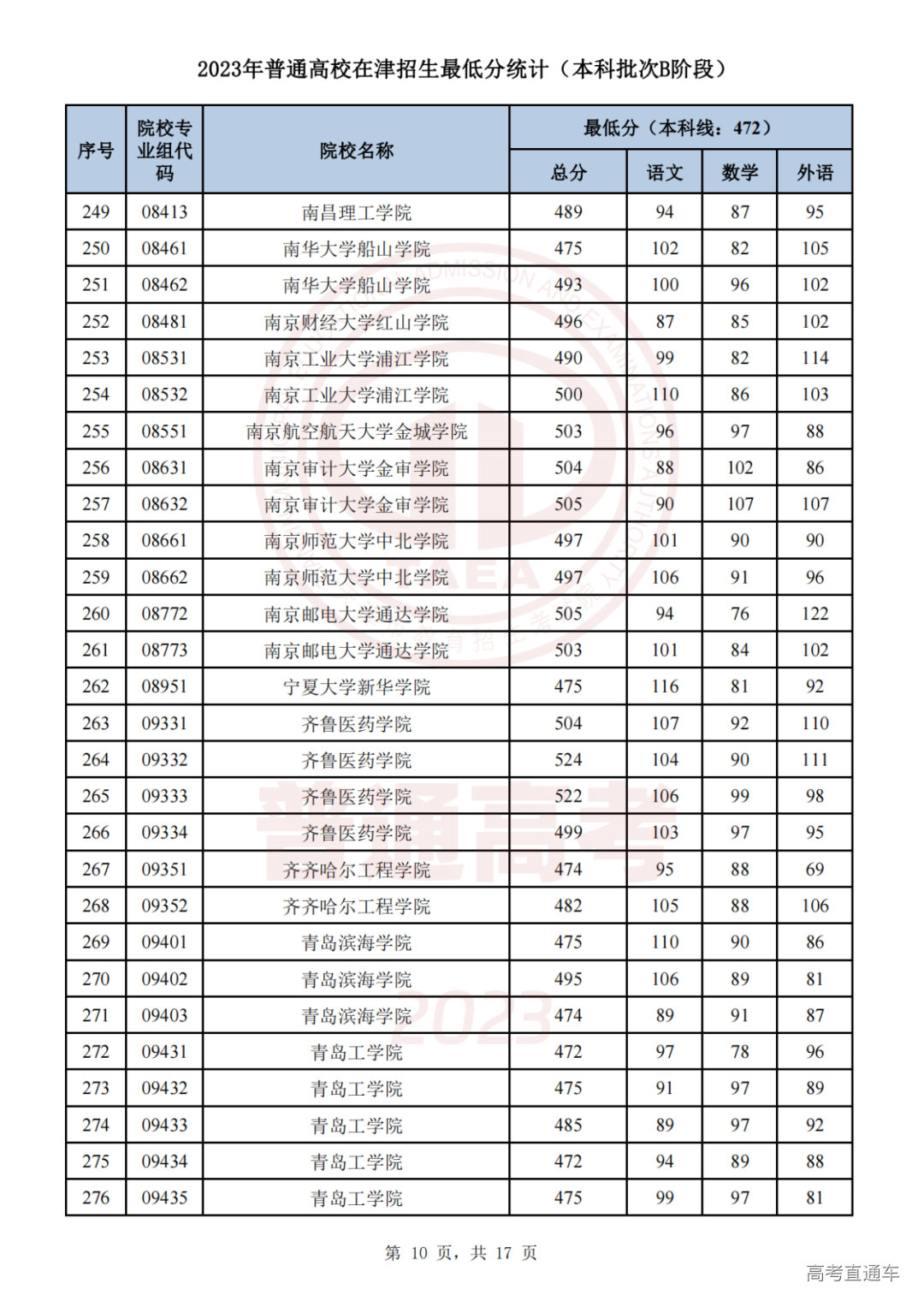 推荐阅读:天津2023年普通类本科批次A阶段各院校专业组录取最低分