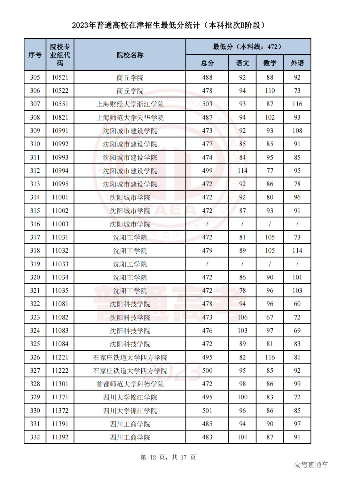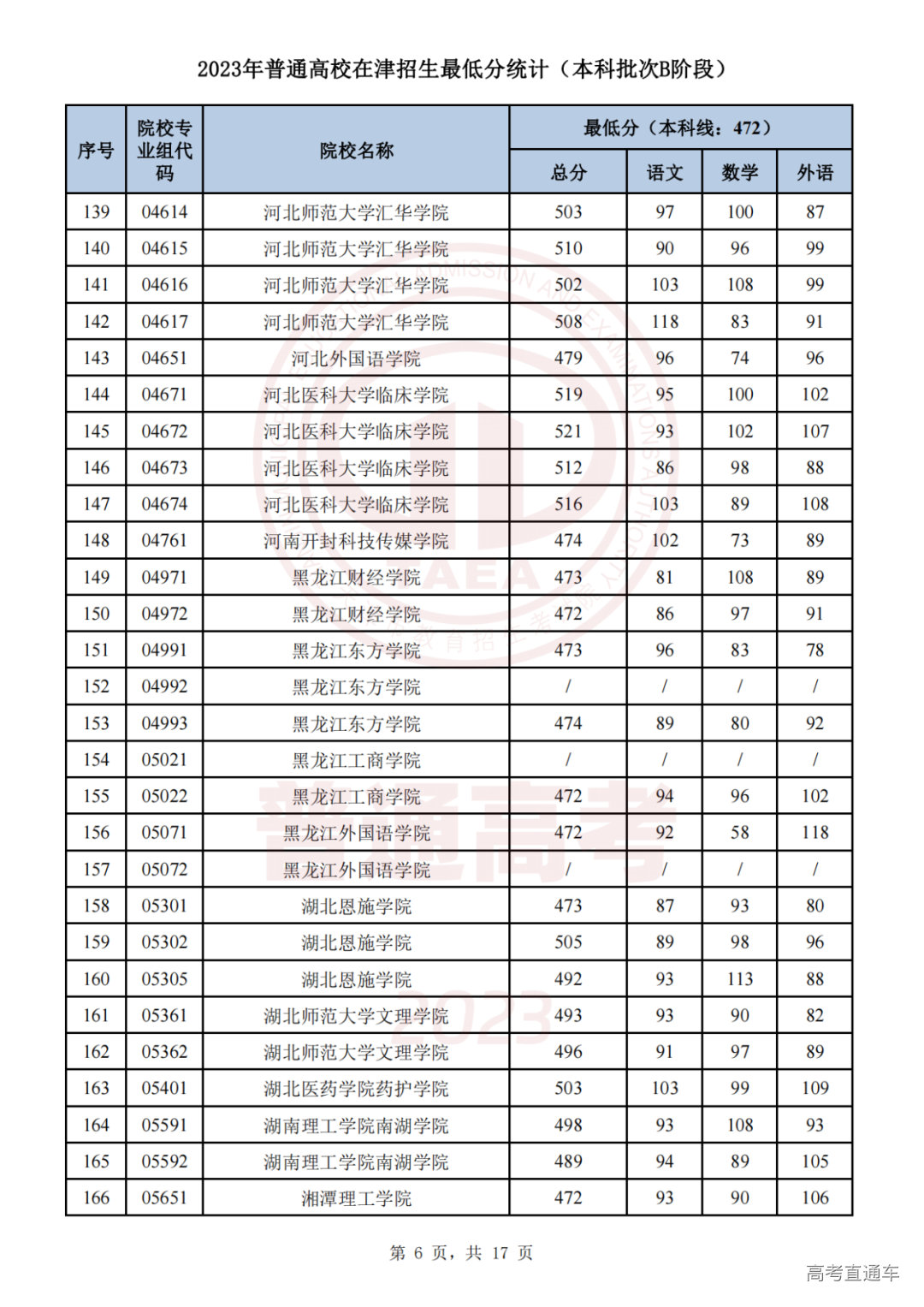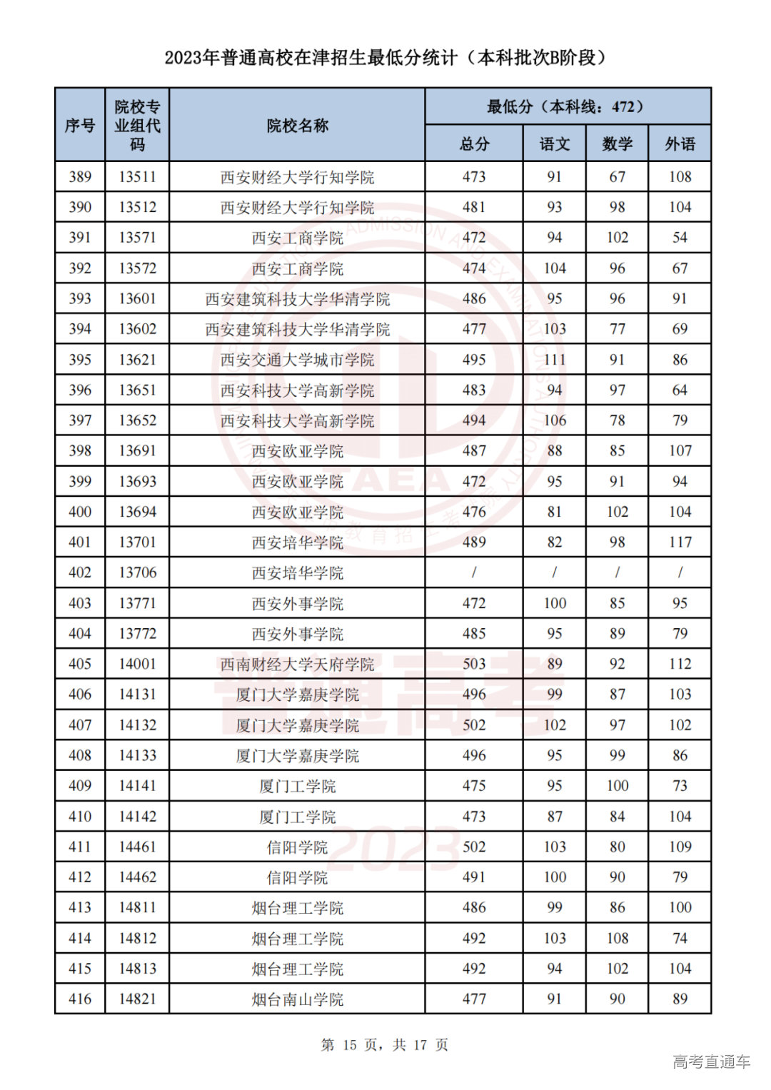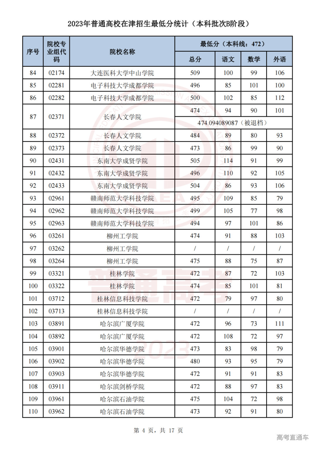推荐阅读:天津2023年普通类本科批次A阶段各院校专业组录取最低分