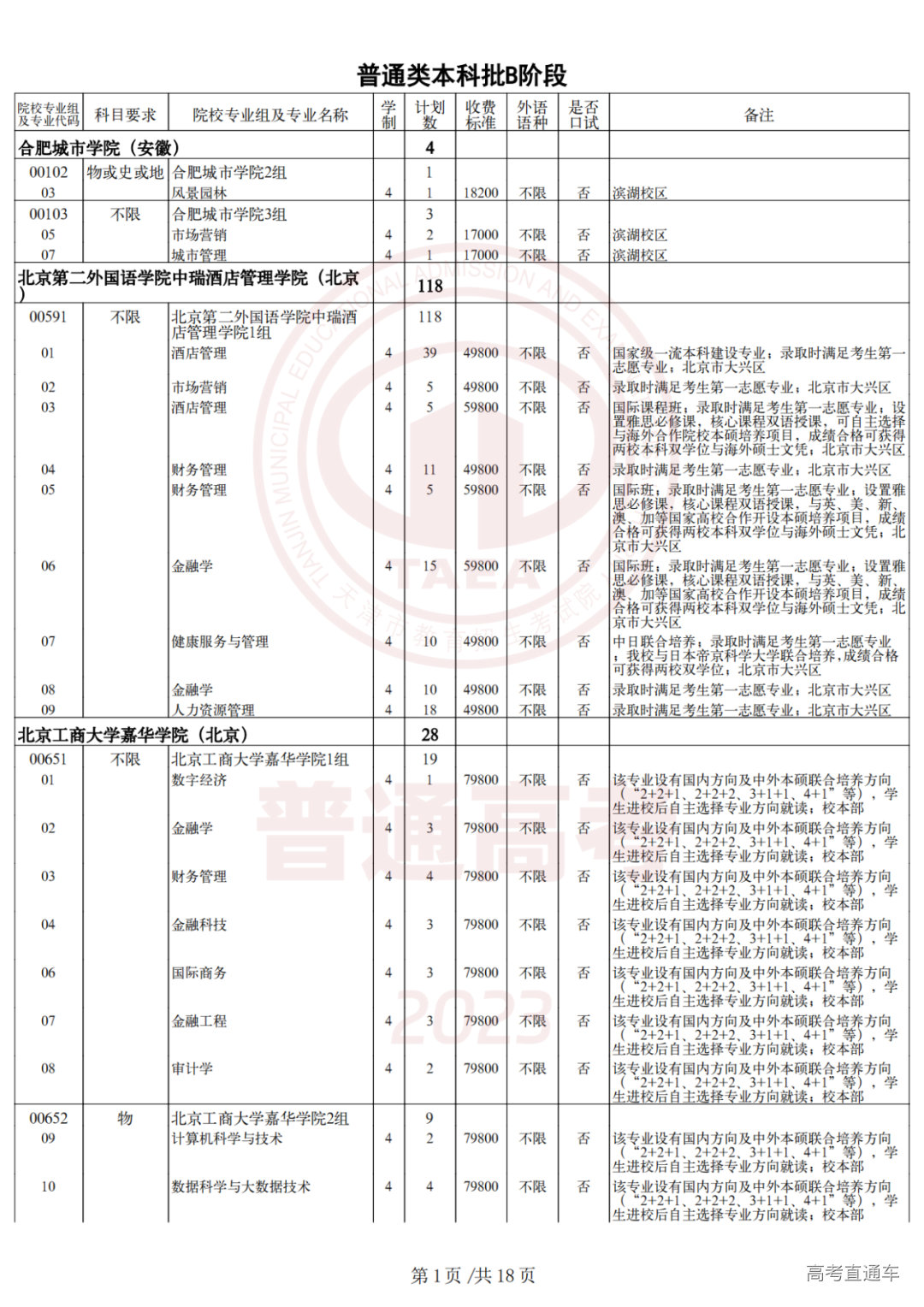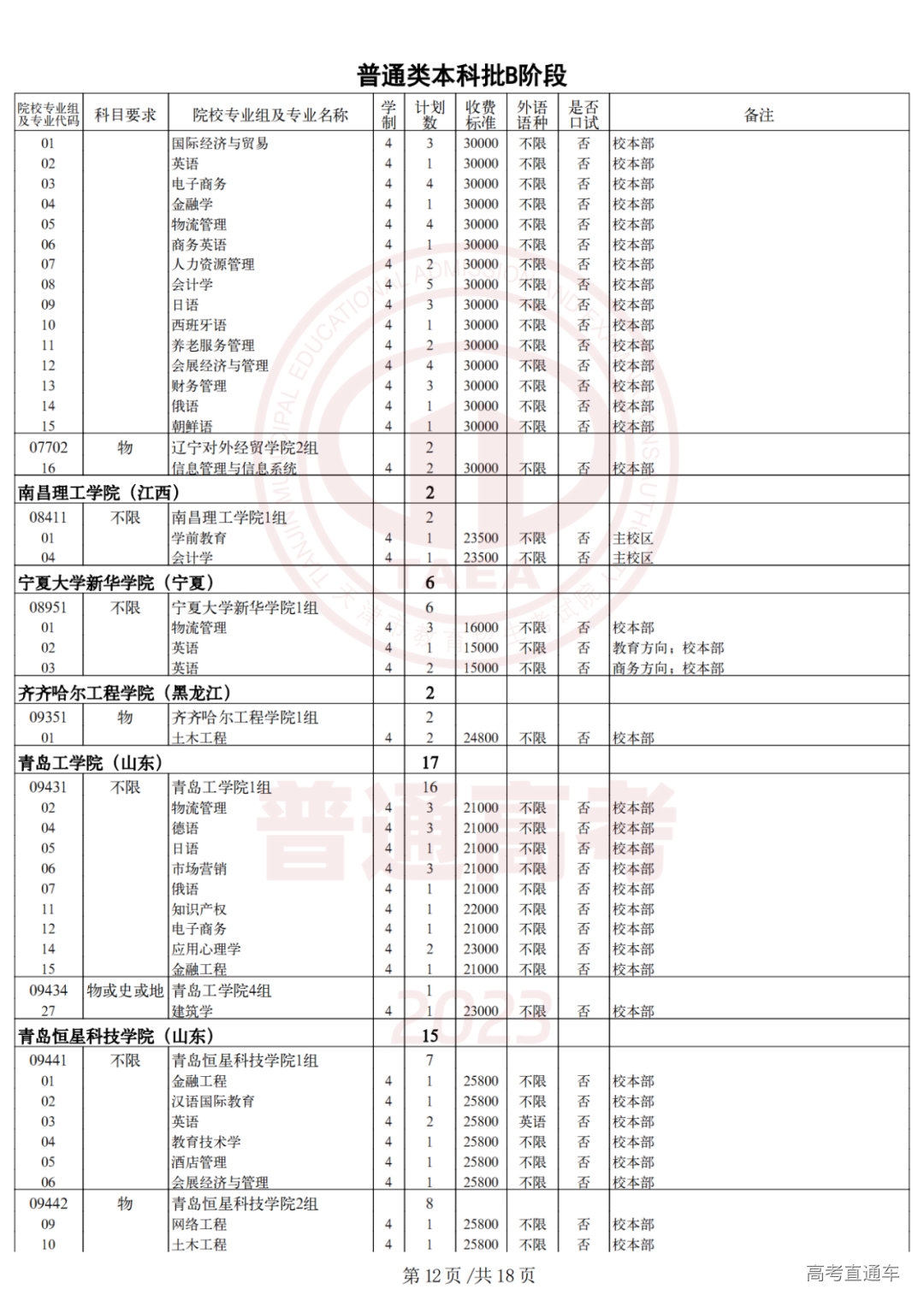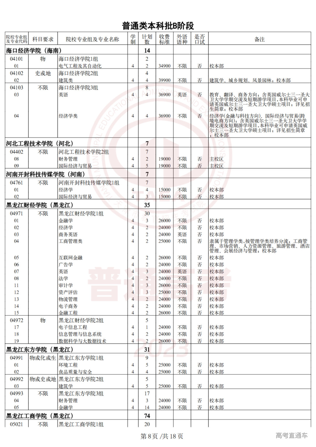 2.2023年普通类本科批次B阶段征询志愿院校专业组余缺计划