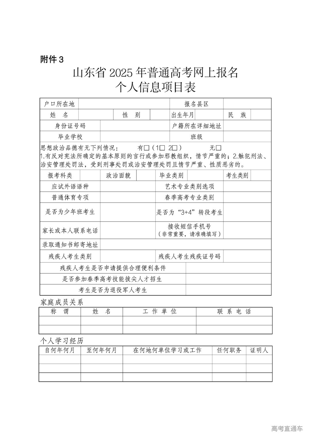 为做好山东省2025年普通高等学校(以下简称普通高校)招生考试报名工作,现就有关事项通知如下: