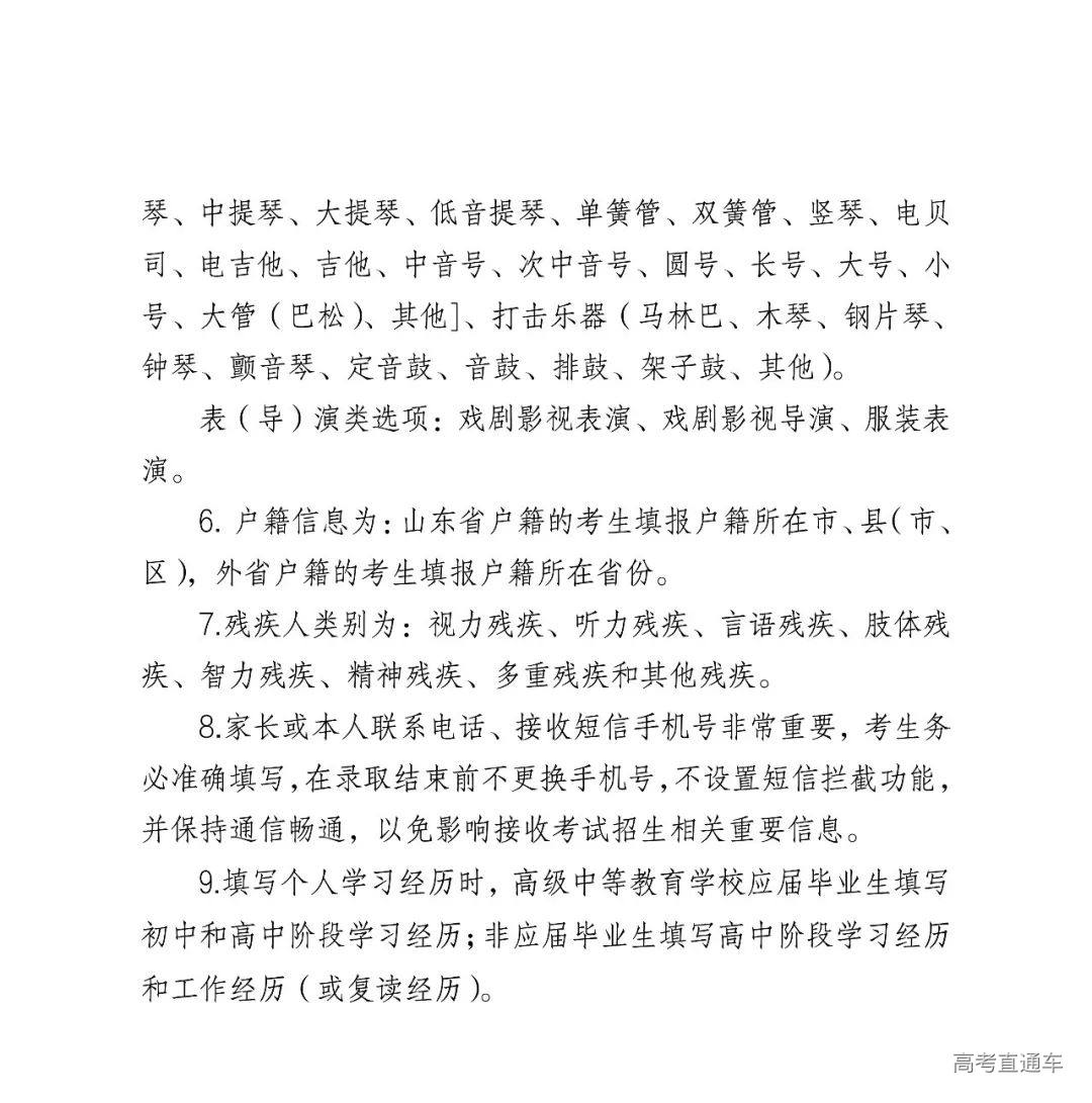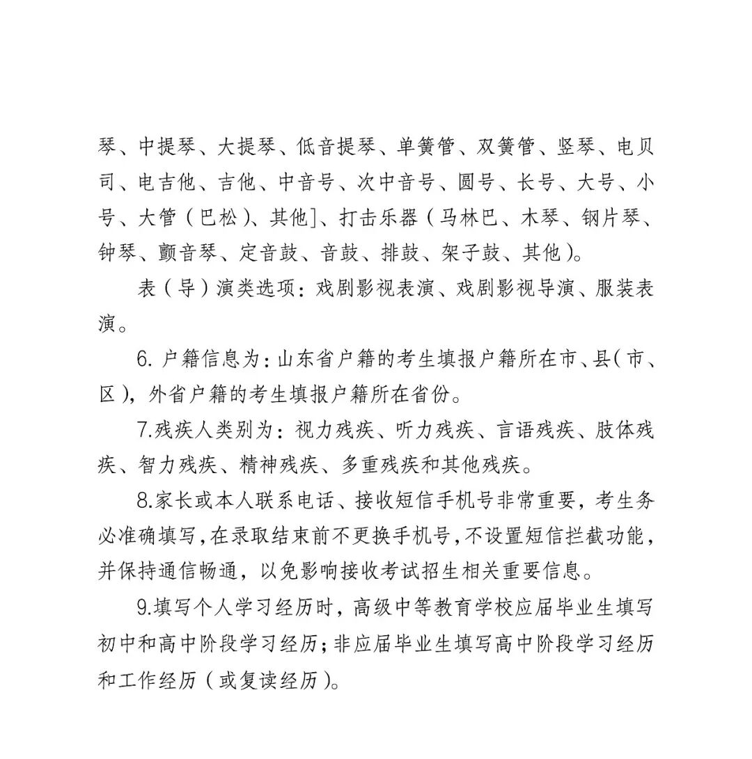 6.户籍信息为:山东省户籍的考生填报户籍所在市、县(市、区),外省户籍的考生填报户籍所在省份。