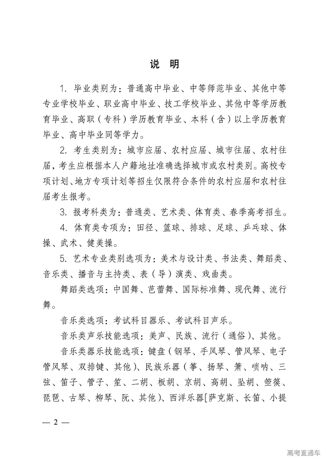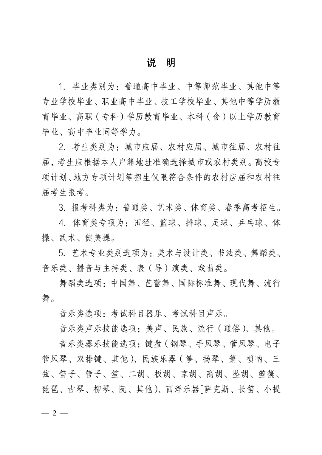3.报考科类为:普通类、艺术类、体育类、春季高考招生。