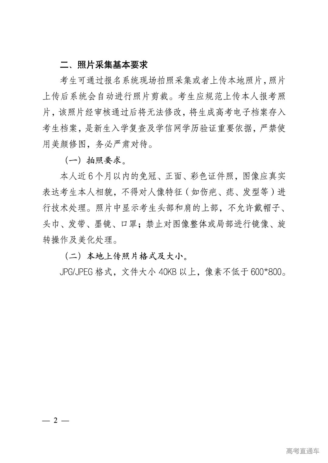 (2)各市、县级教育招生考试机构严格审核考生户籍信息和民族信息;外国侨民、华侨、港澳地区及台湾省考生须持相关有效身份证件到当地市、县级教育招生考试机构进行现场确认。