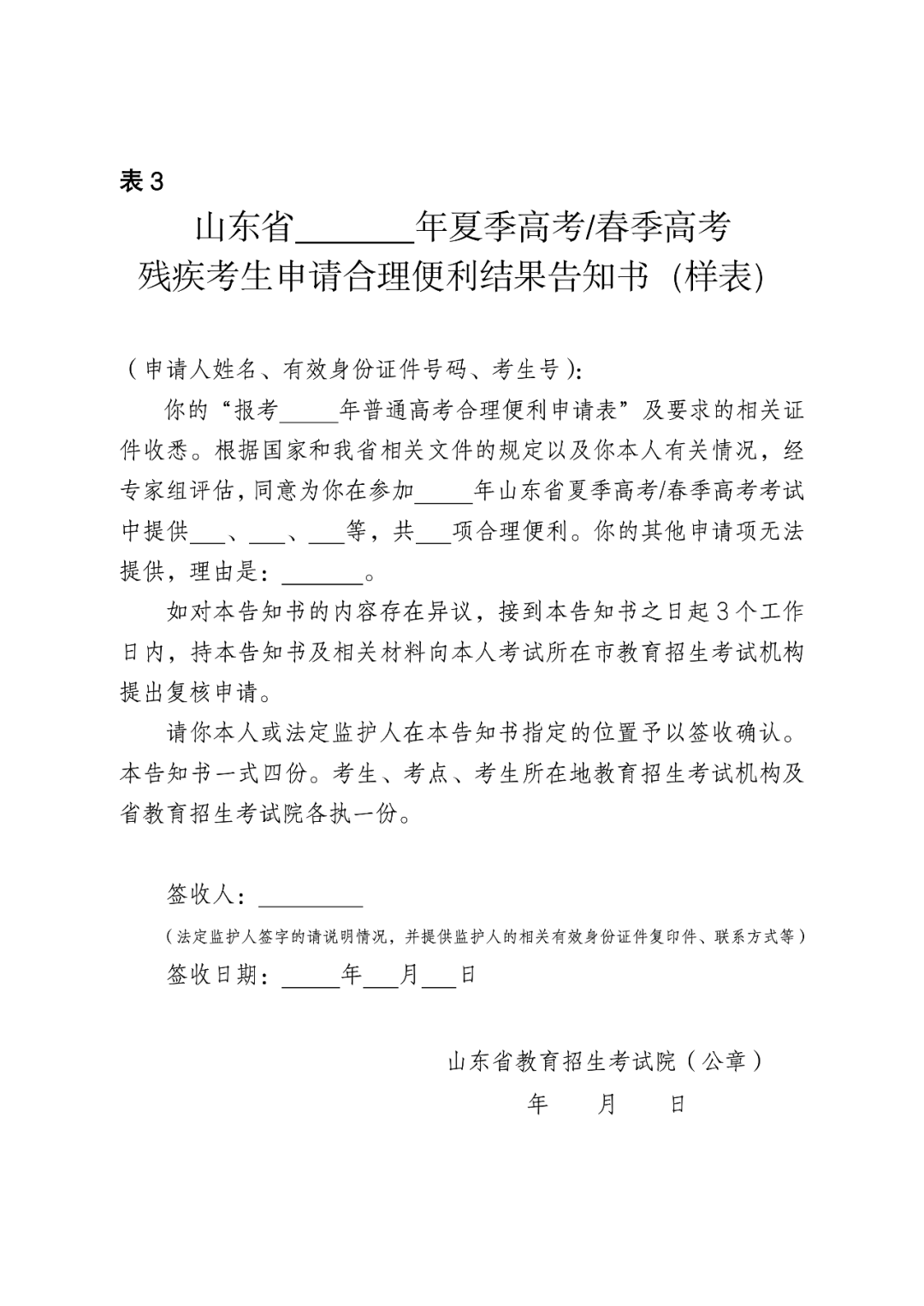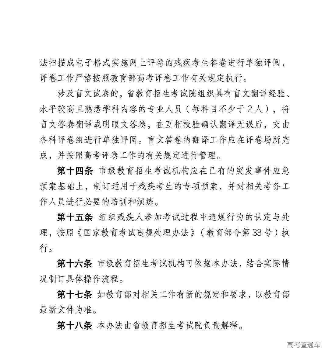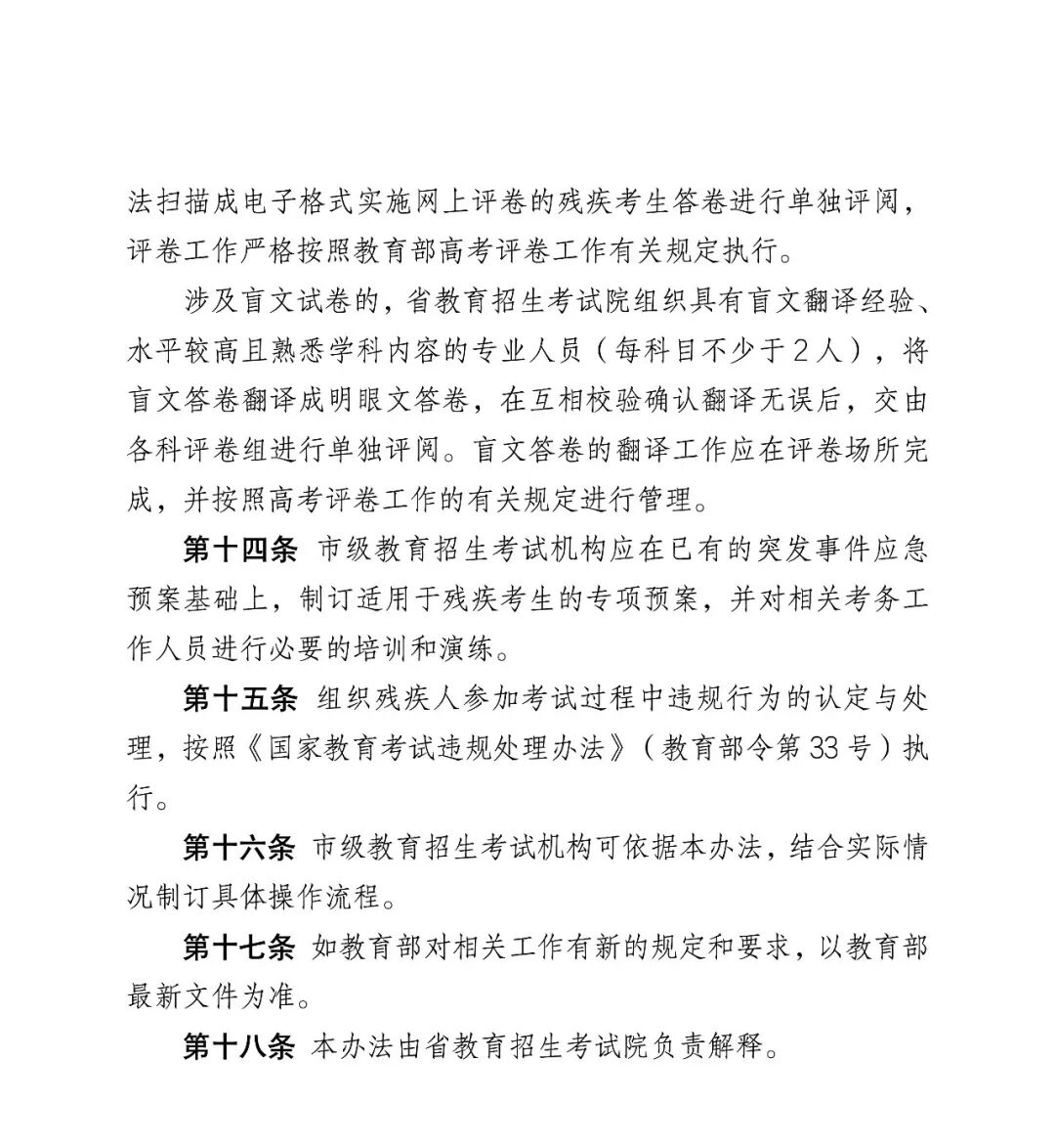该工作具体办法按《山东省残疾人参加普通高考申请合理便利实施办法(暂行)》(附件10)办理,市、县级教育招生考试机构要据此做好政策解读、资格审核等相关工作。市级教育招生考试机构应于2025年4月1日前报送《残疾人报考普通高考合理便利申报汇总表》(附件10表2),其他材料各市留存备查。