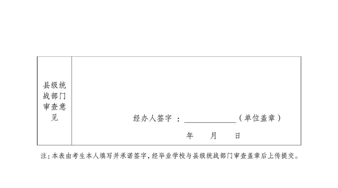 (2)资格审核。县级教育招生考试机构对申报考生的相关材料进行初审,确保材料完整后将登记表和相关证明材料汇总报市级教育招生考试机构,市级教育招生考试机构联合市级统战部门复审后报省教育招生考试院。