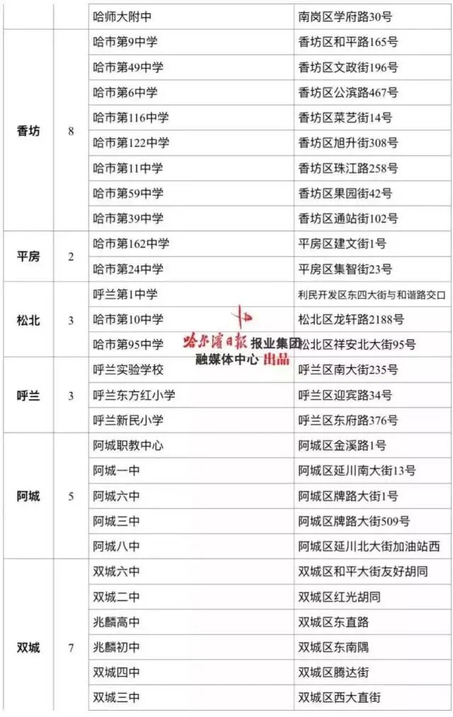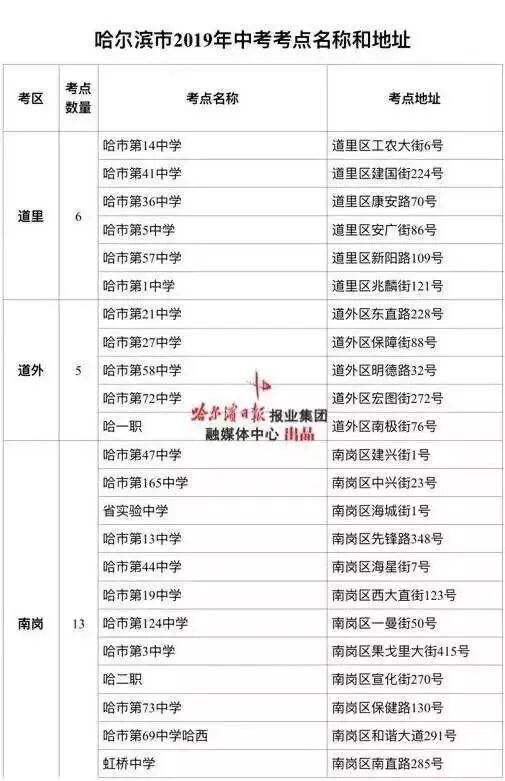 据悉,2019年哈市中考共设18个考区,78 个考点,2202个考场,其中哈市市内9区共52个考点。2020年考区、考点、考场数量尚未发布。1.认真阅读《准考证》上的信息及《考场规则》,牢记考试时间、地点、考场及需要严格遵守的各项要求。2.考试前一天,准备好《准考证》和考试所需文具(2B铅笔、黑色0.5mm签字笔、直尺、圆规、三角板、橡皮擦),考试用笔等主要文具可多带备用,将它们收纳在透明袋中并放在醒目处,以免遗忘。3.中考考场不配备挂钟,考生可自行准备无任何液晶显示及电子存储、计算、通讯等功能的纯指针式手表(机械和石英等纯指针式手表均可)。考试前一天,要检查好手表的走时情况并准确校时。。4、严禁将手机等通讯设备及其他带有计算、存储、摄录、传输等功能的电子设备带入考场。严禁将任何书籍和资料带入考场。