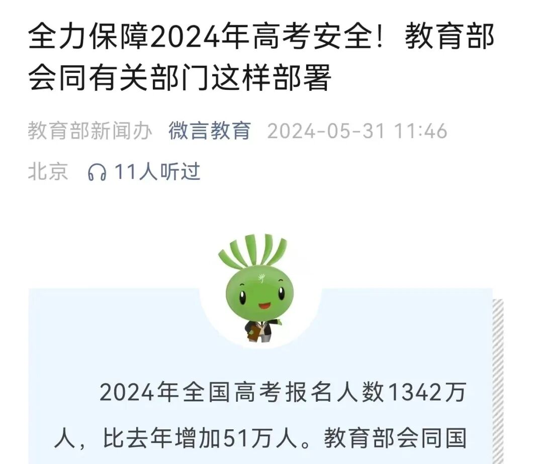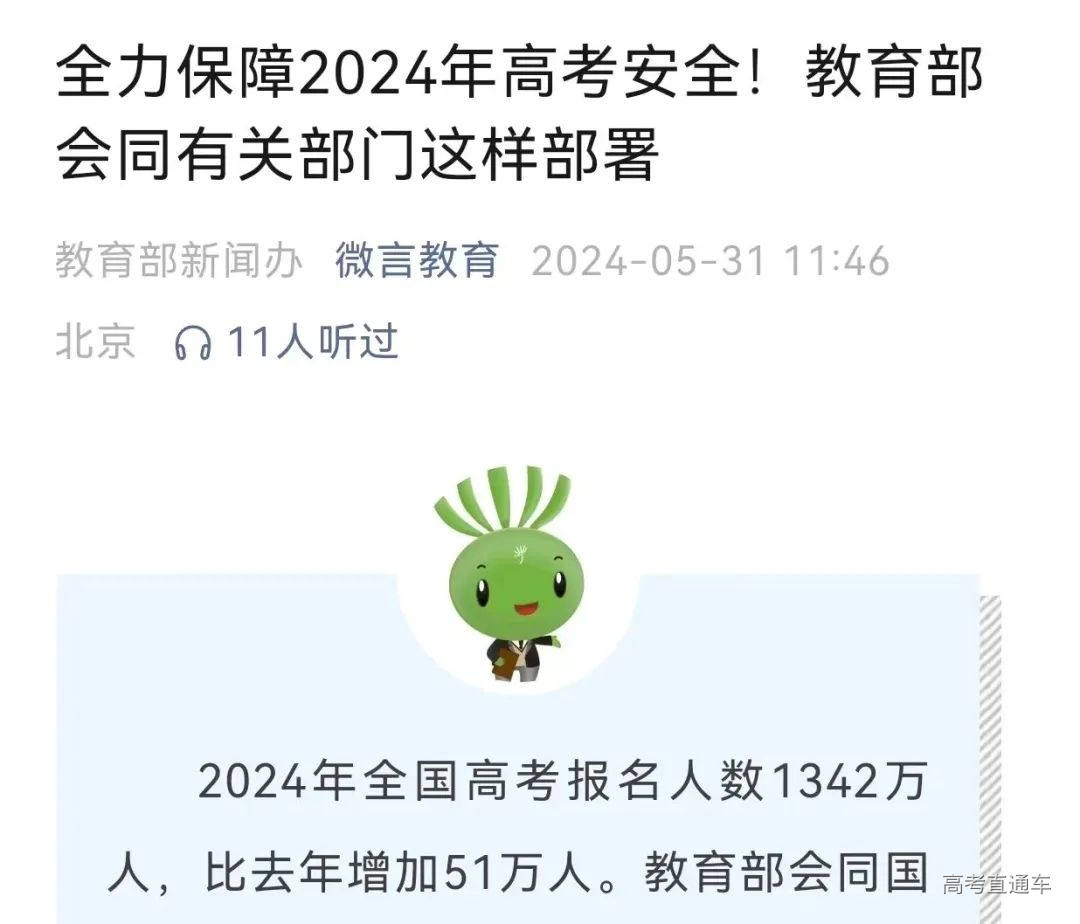 ◆全国人数:高考报名人数达到1342万人,比2023年增加了51万人。