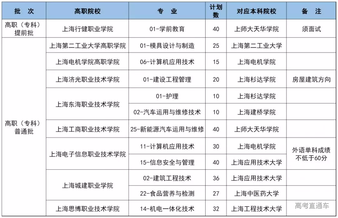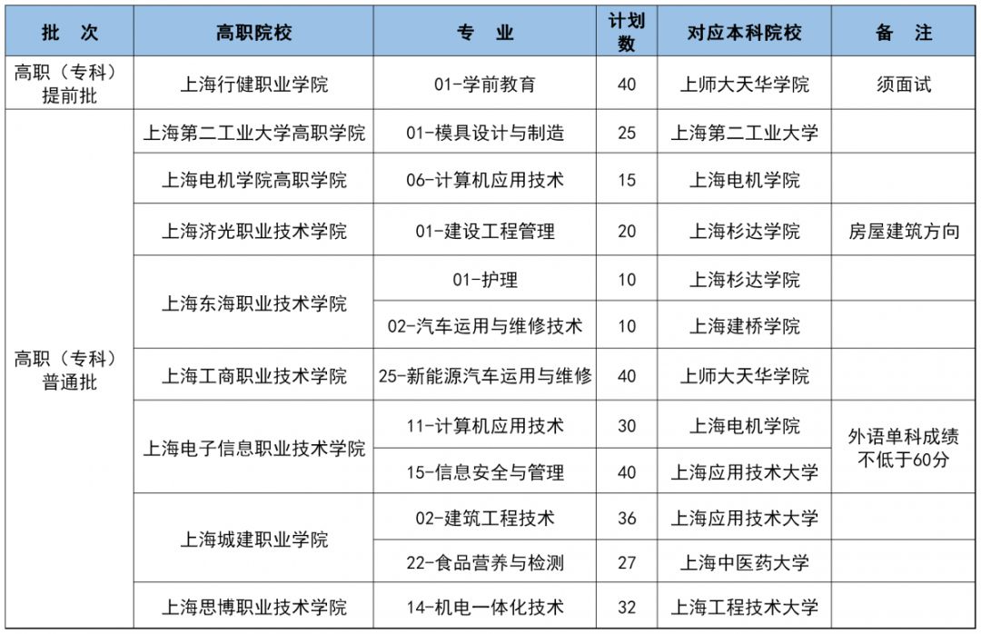 “高本贯通”试点专业通过秋季全国统一高考招生,所有专业均纳入高职院校高考招生专业目录,并于高职普通批次进行录取,招生计划由上海市教委统筹安排。