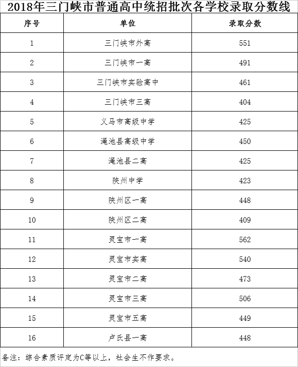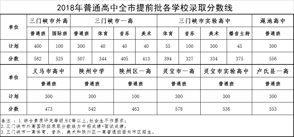 普通高中市区征集批次录取分数线 陕州区一高 426