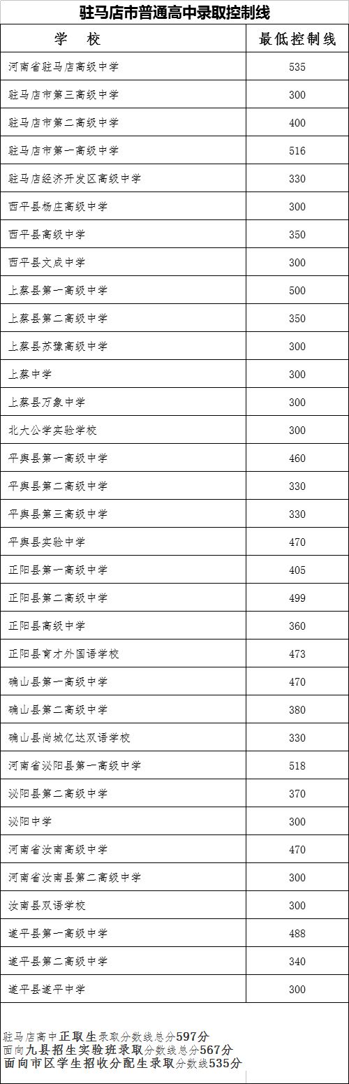 全市统招分数线:584.5 县内分配生分数线:534.5 县内分配生计划余额录取分数线:552.5