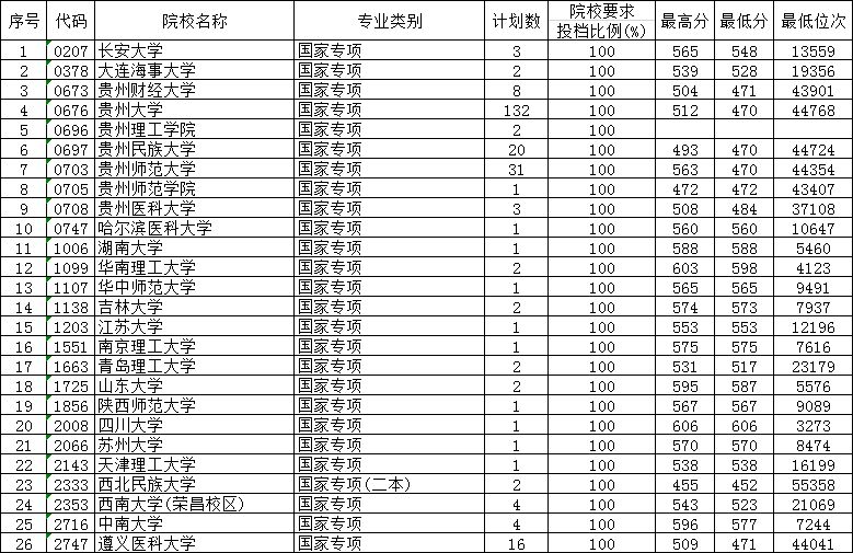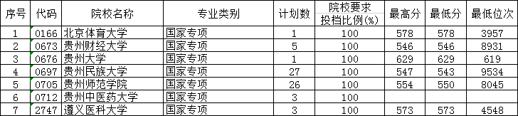 贵州省2019年高考国家专项计划第2次补报志愿投档情况