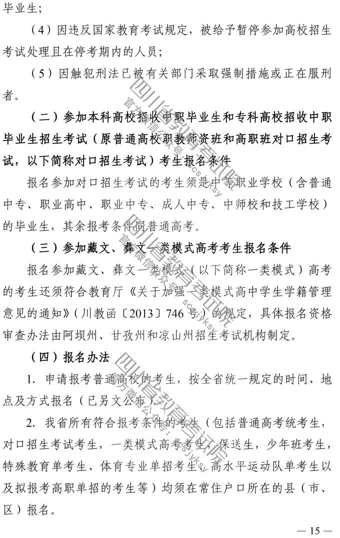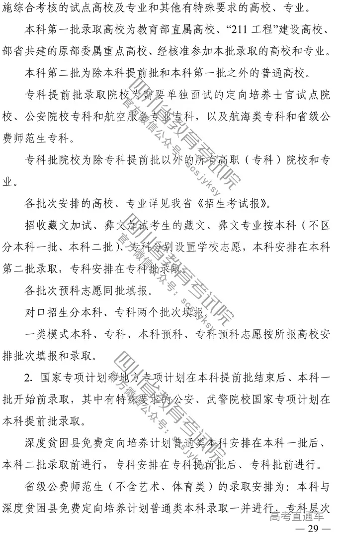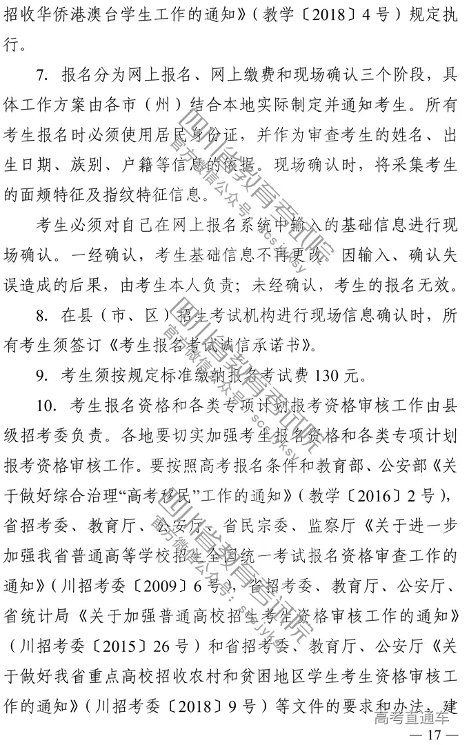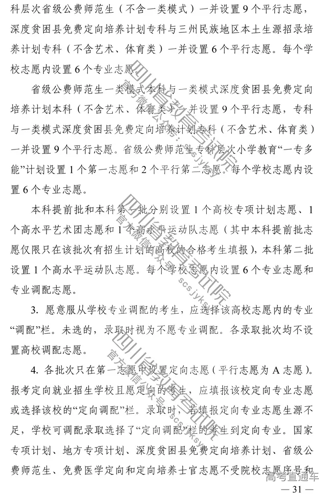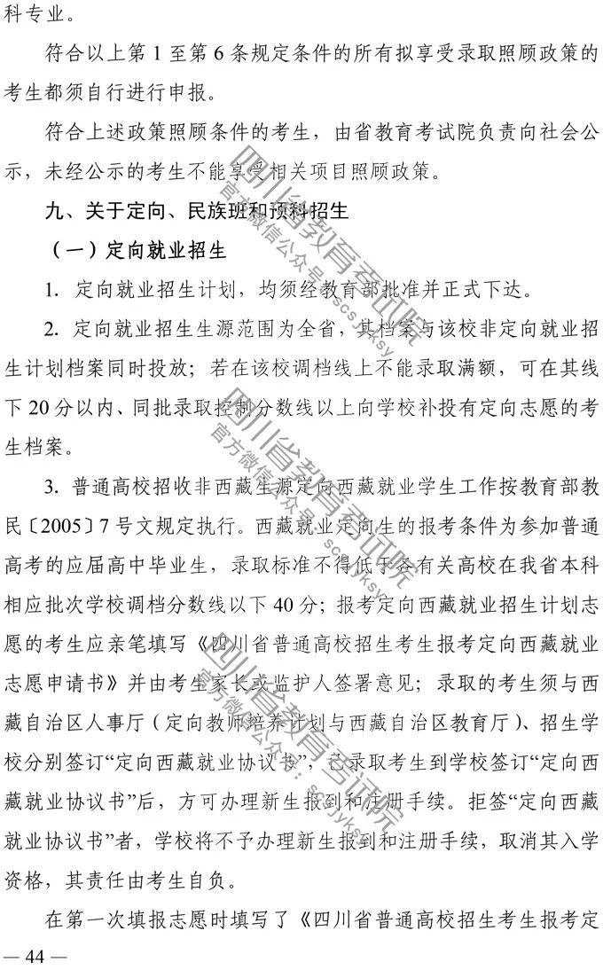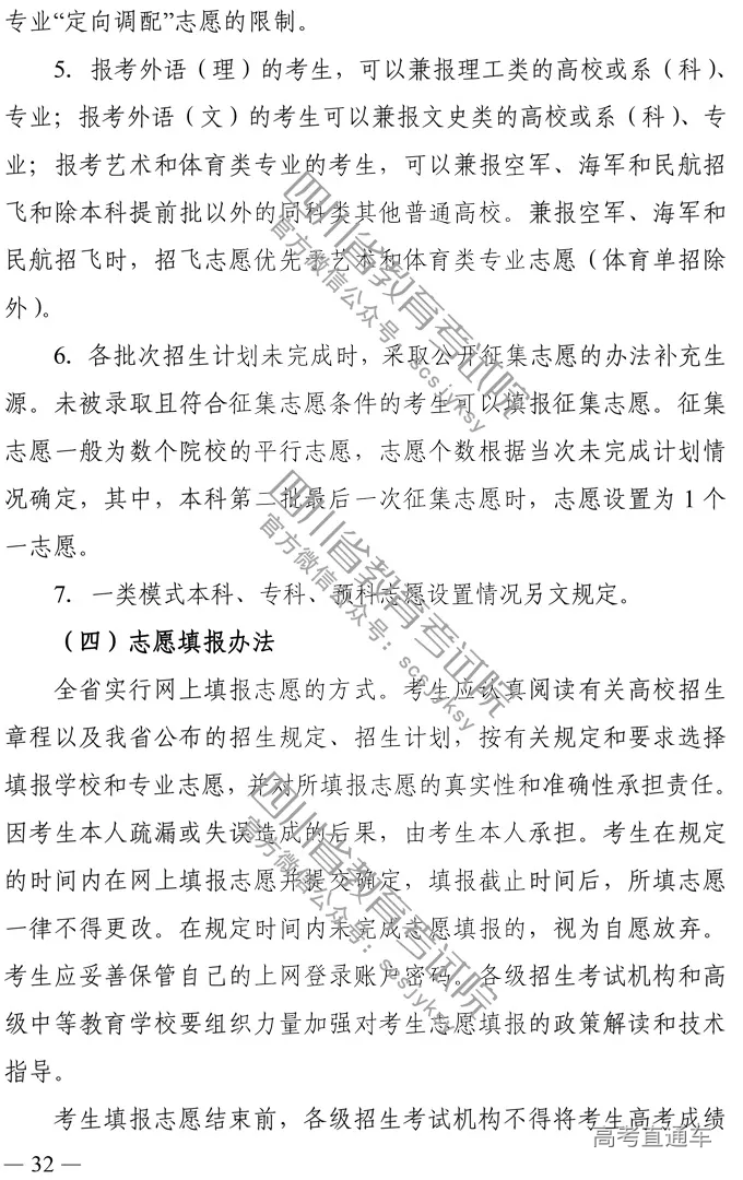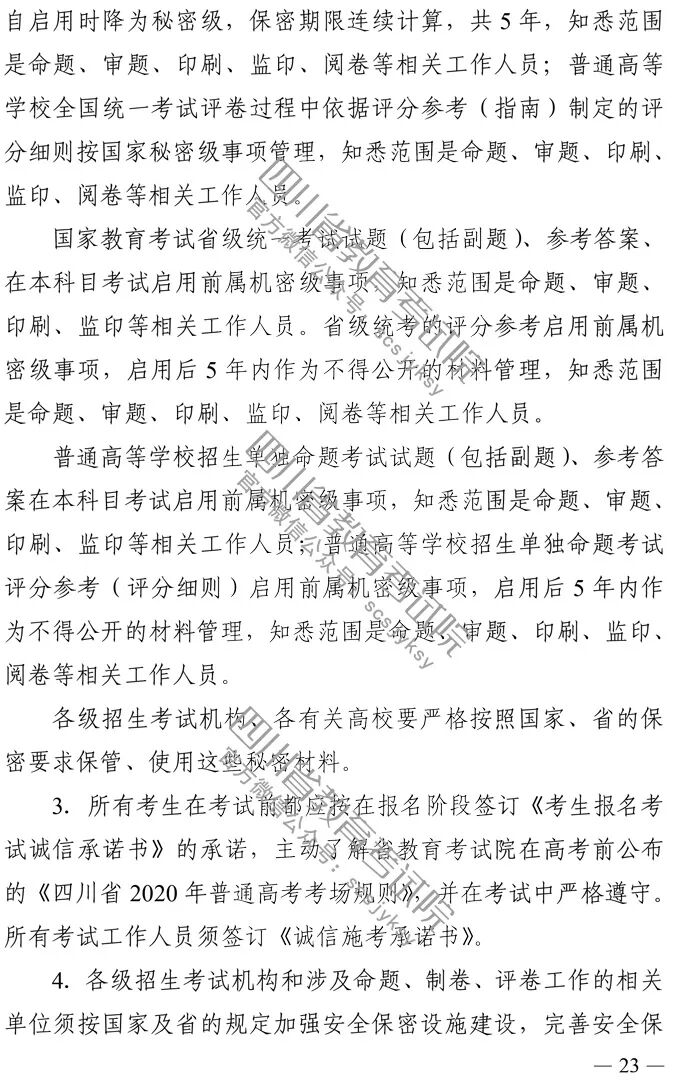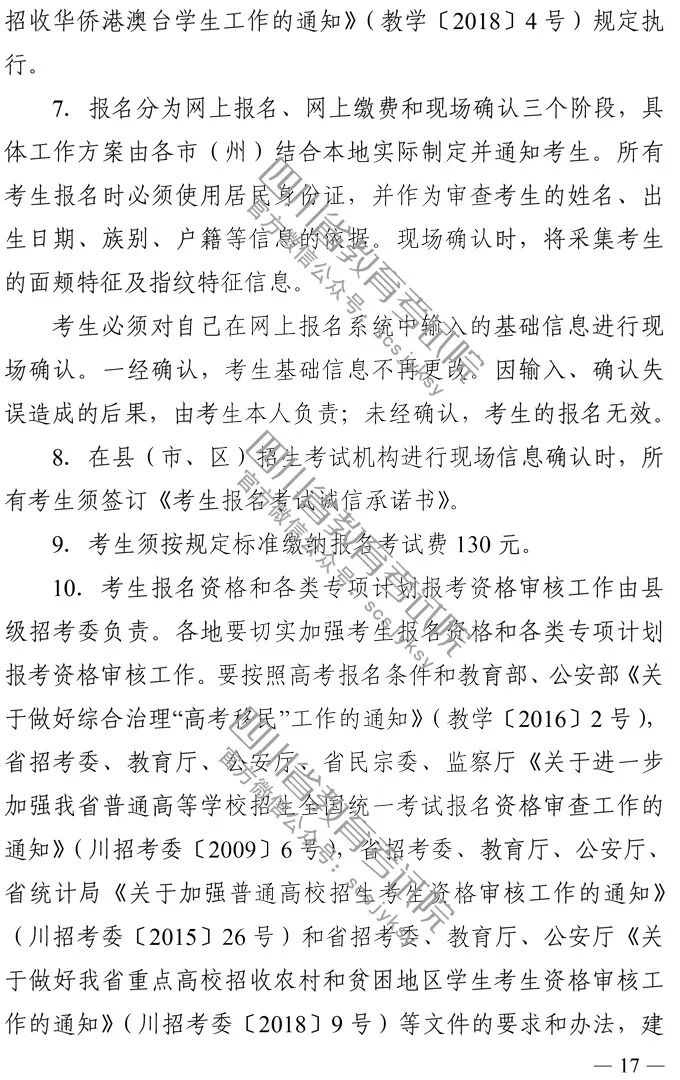 《四川省高等教育招生考试委员会 四川省教育厅关于做好我省2020年普通高校招生工作的通知》已下发,对我省2020年高考招生录取工作进行统一安排部署。小编将《通知》中的附件《四川省2020年普通高校招生实施规定》转发给大家,其中包括今年我省高考各批次的志愿填报时间、录取批次安排、志愿设置及志愿填报办法等,请考生务必仔细阅读。
