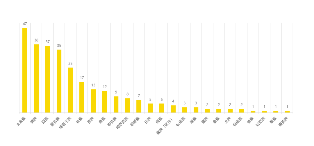 其中土家族的同学最多,共有47人