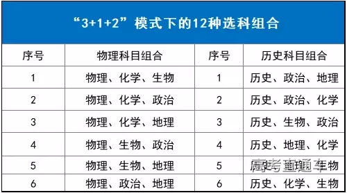 1、”3+1+2“选科模式下的12种组合