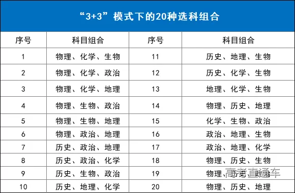 2、”3+3“选科模式下的20种组合