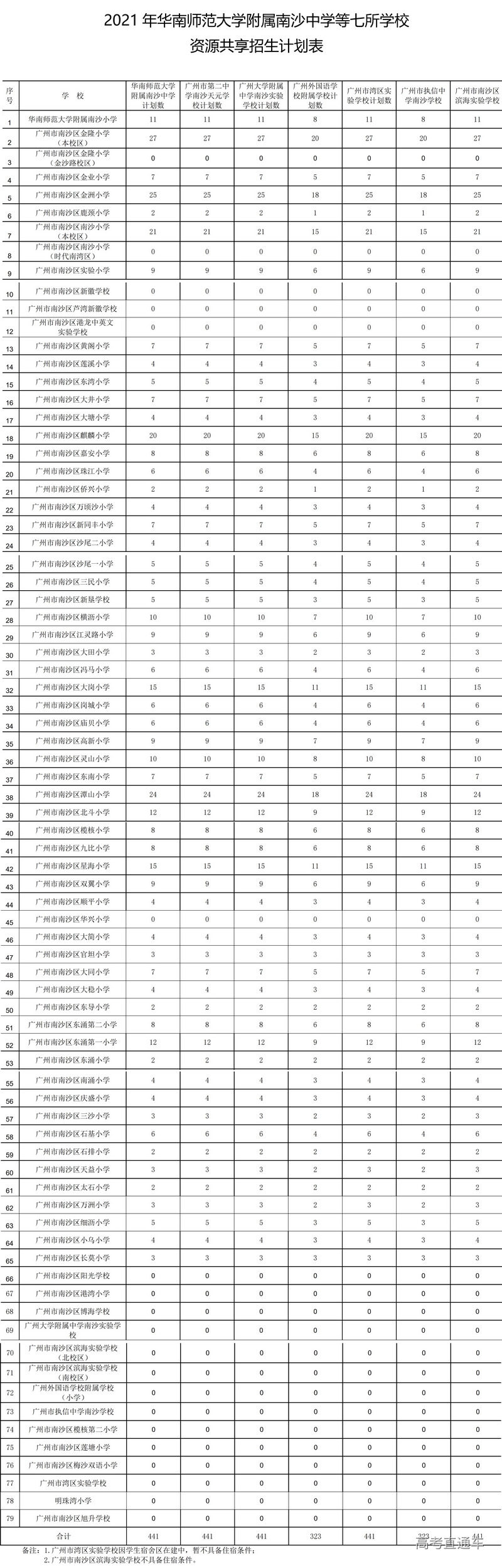 1.2021年七校初中面向全区资源共享招生,按照七校资源共享招生计划数的3倍确定全区电脑派位人数。各小学参加全区电脑派位的该部分计划数按照该校南沙区户籍毕业生人数占全区户籍毕业生总人数比例进行计算。