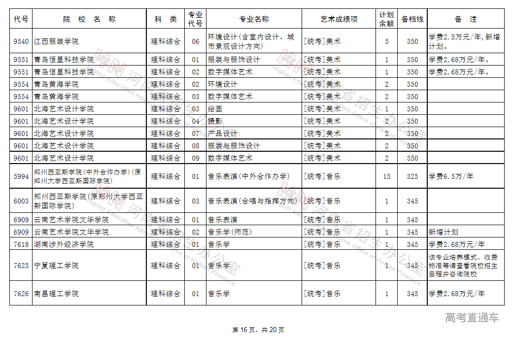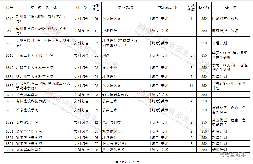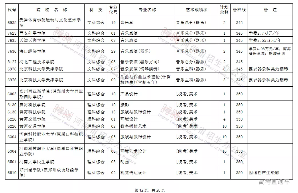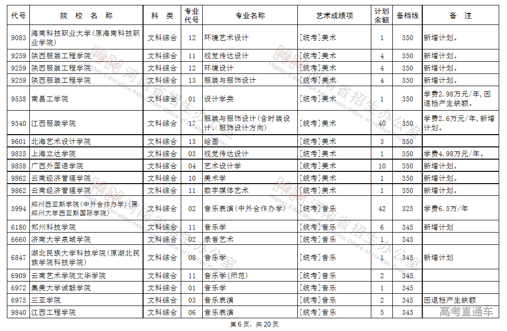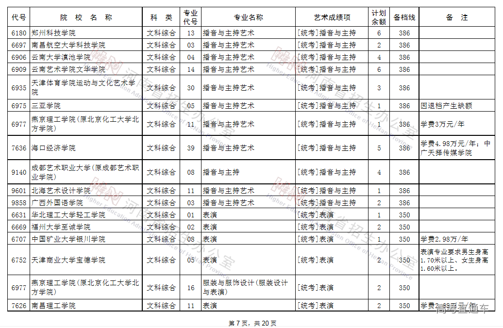 (一)凡高考文化成绩、专业省统考成绩达到省定相应艺术类本科B段的录取控制文化线与专业分数线,当前未被录取的艺术类考生,可补报使用省统考专业成绩录取的学校志愿,其中郑州西亚斯学院(中外合作办学)执行录取控制文化线降20分备档。
