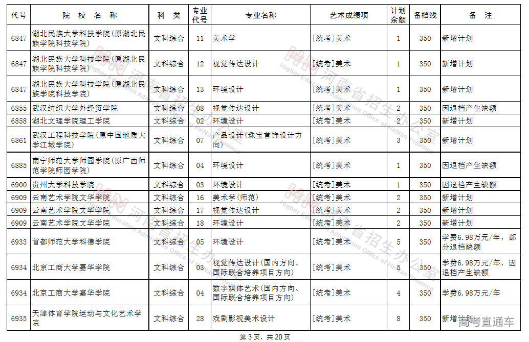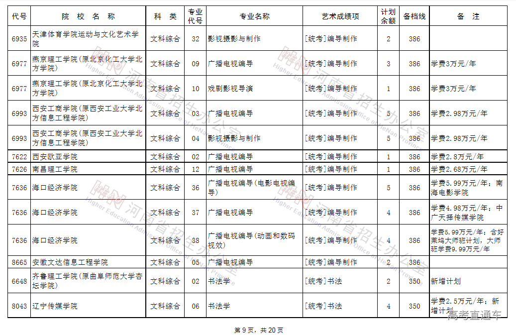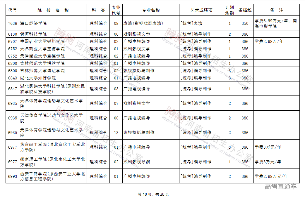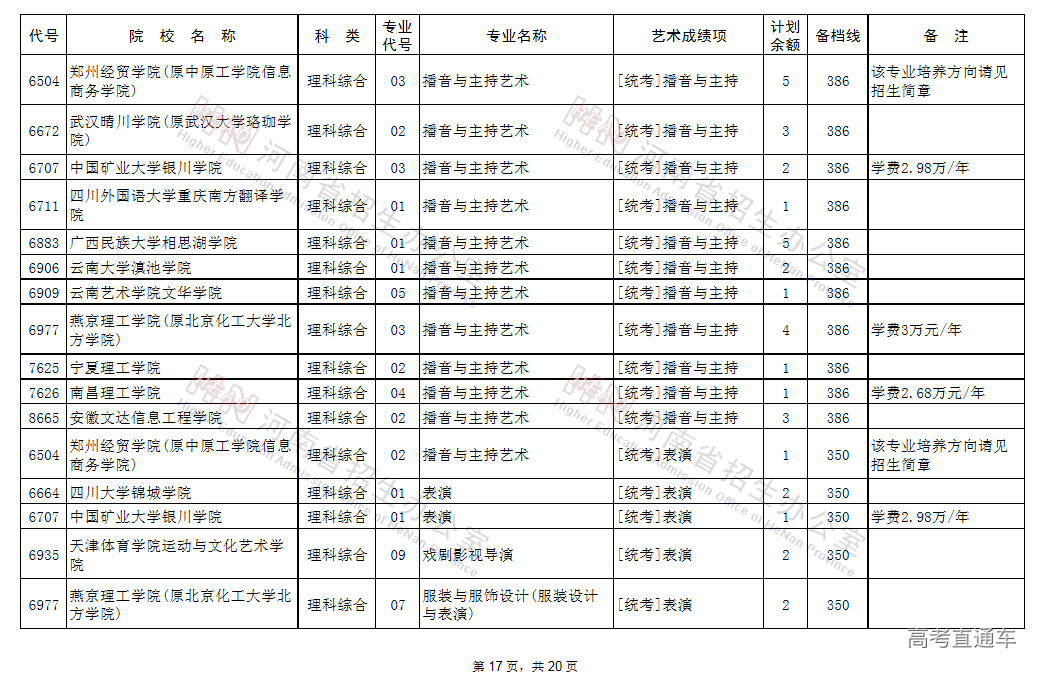 (一)凡高考文化成绩、专业省统考成绩达到省定相应艺术类本科B段的录取控制文化线与专业分数线,当前未被录取的艺术类考生,可补报使用省统考专业成绩录取的学校志愿,其中郑州西亚斯学院(中外合作办学)执行录取控制文化线降20分备档。