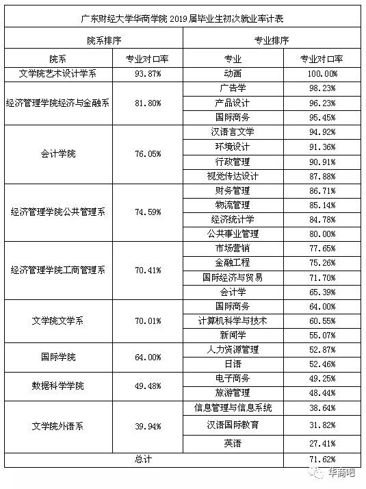 我校2019年毕业生总人数为6108人,男生1741人,女生4367人,男女比例约为1:2.51。毕业生培养方式均为非定向,比例100%。从毕业生生源地构成来看,来自珠三角地区生源4687人,比例为76.73%;粤北地区生源53人,比例为0.93%;粤东地区生源327人,比例为5.35%;粤西1187人,比例为22.04%;外省151人,2.47%。 广东财经大学华商学院2019届毕业生初次就业率达97.39%,高出全省普通高等学校毕业生初次就业率2.81%(其中高出全省本科院校平均就业率3.95%)。学校初次就业率在全省独立学院中排名第一位,在全省本科独立学院和民办院校排名第三位。
