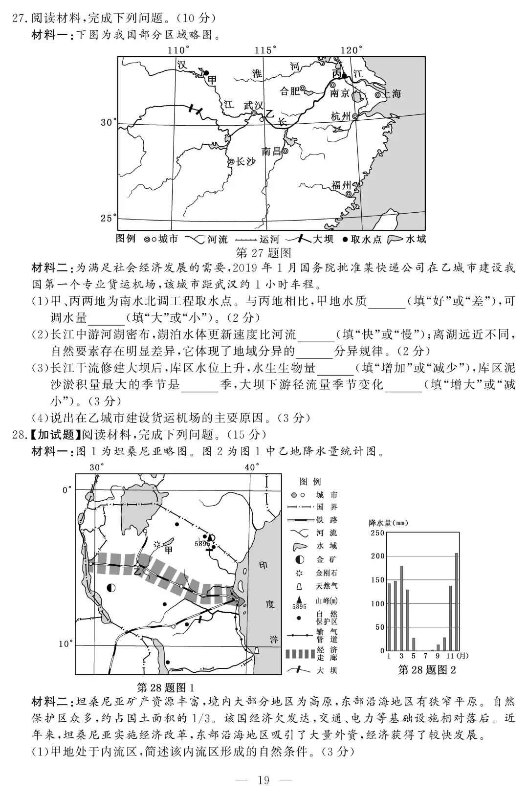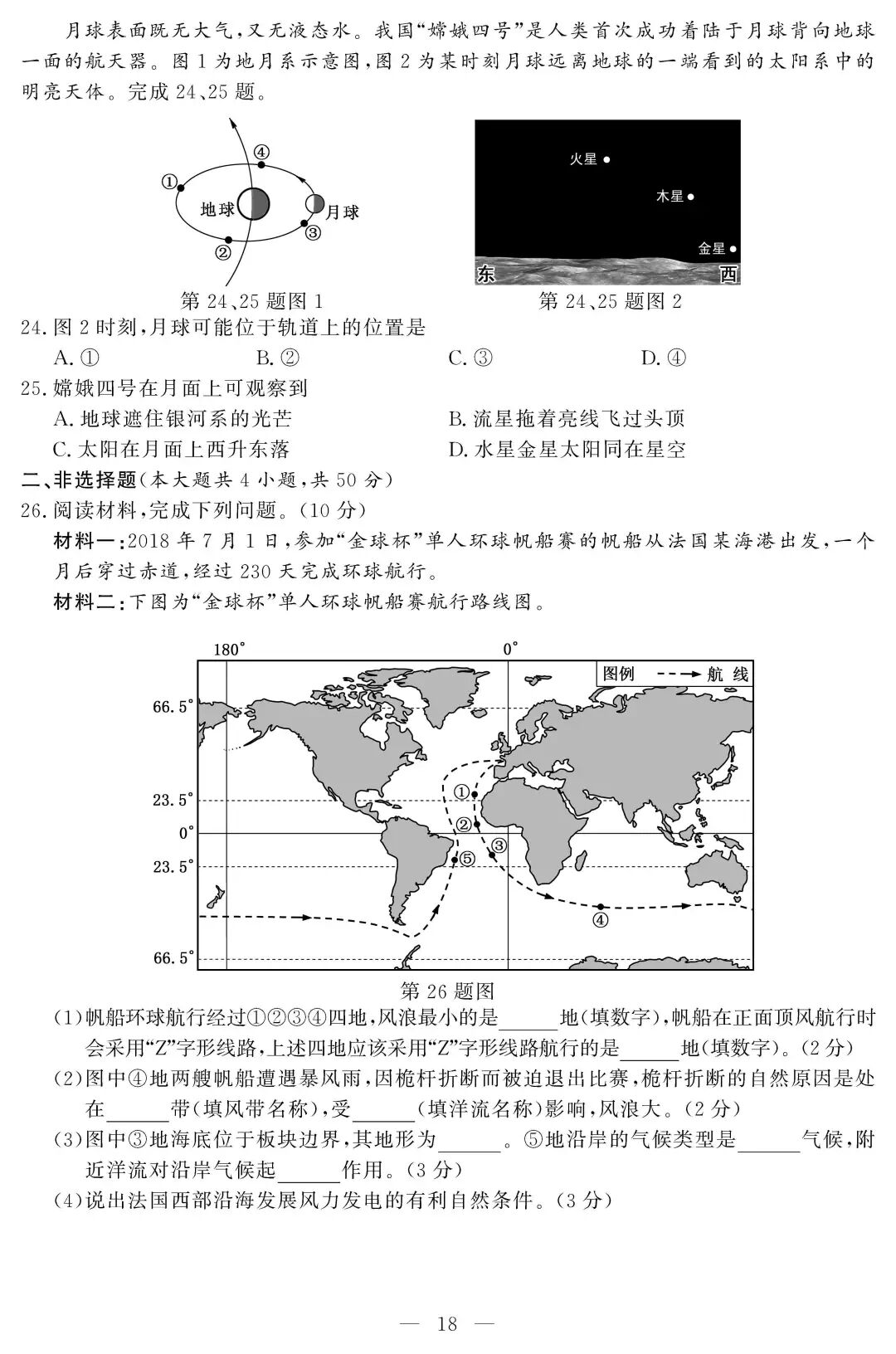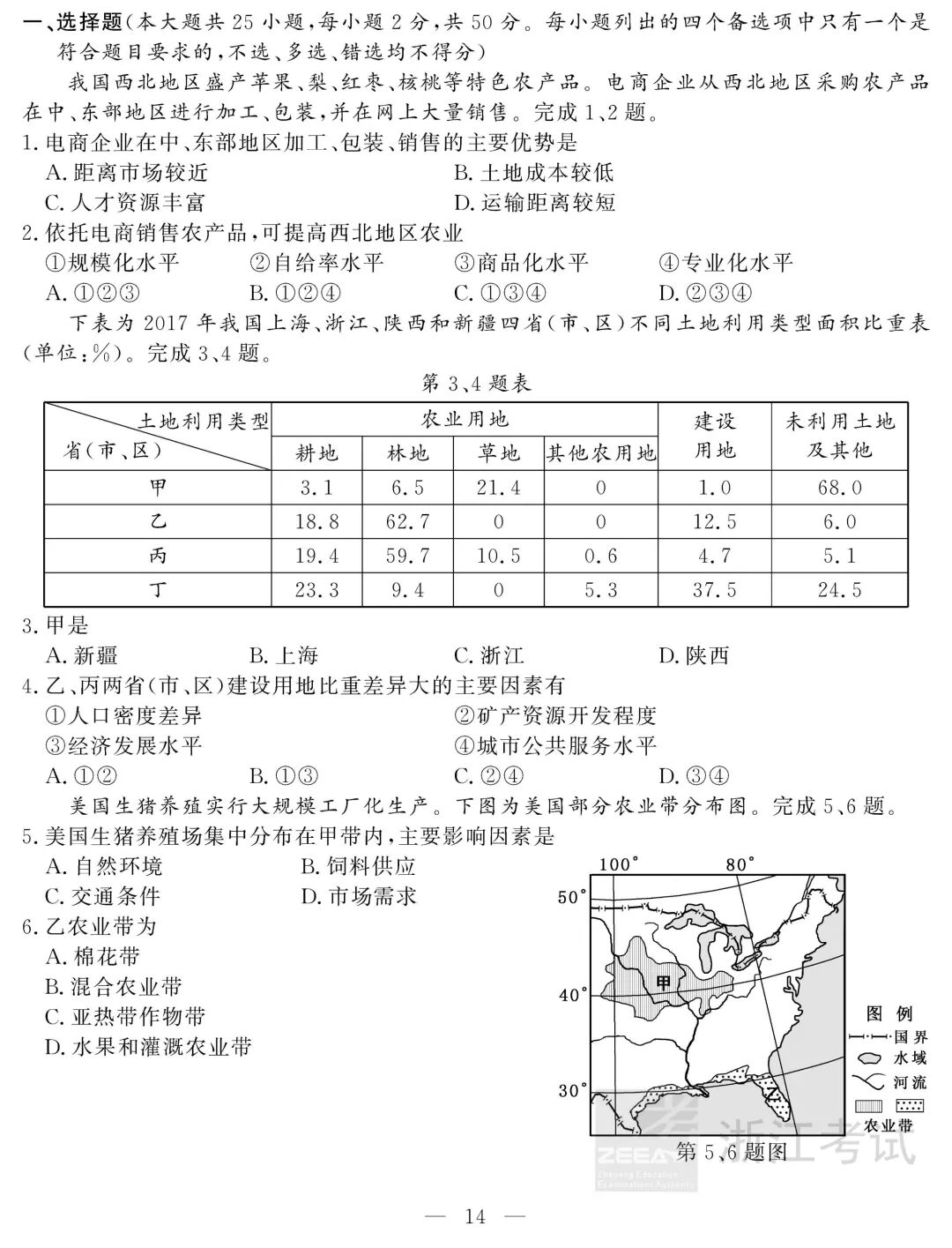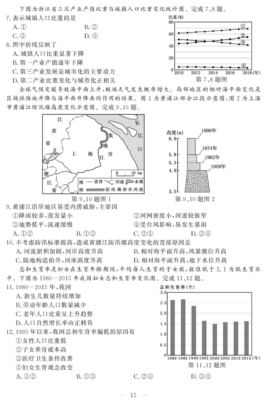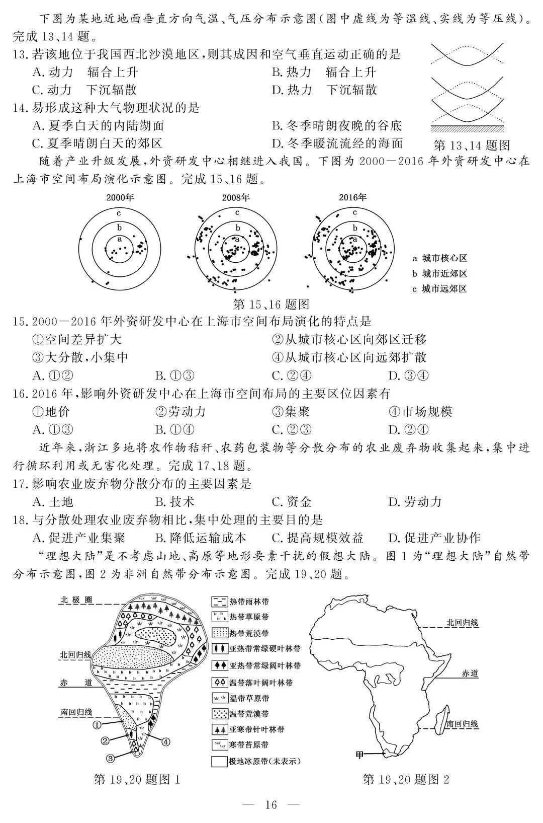 浙江省2019年4月学业水平考试地理试题及参考答案