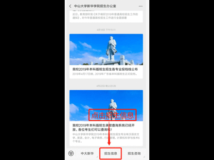 (一)“中山大学新华学院招生办公室”官方微信公众号查询