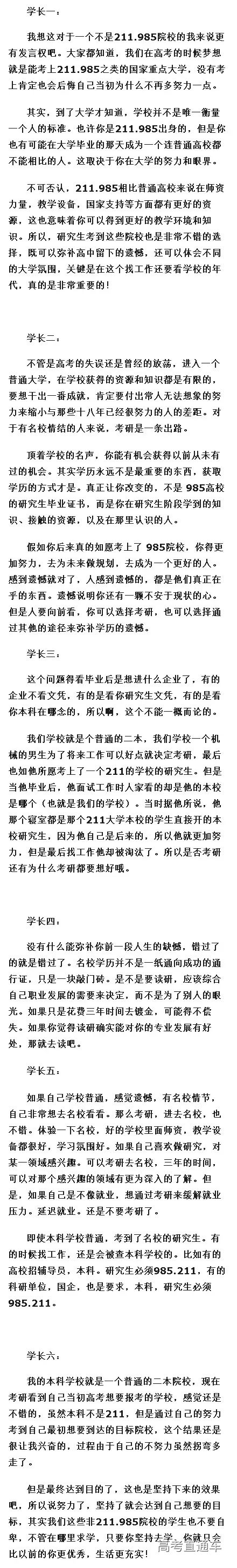 @E君:高考不分985、211,但考研对985、211的重视程度超乎想象。学校美名其曰,是优化生源结构。很多学校会为985.211的学生留专有名额,最直接的感受是,现在调剂你不是985、211,真的会很难的。