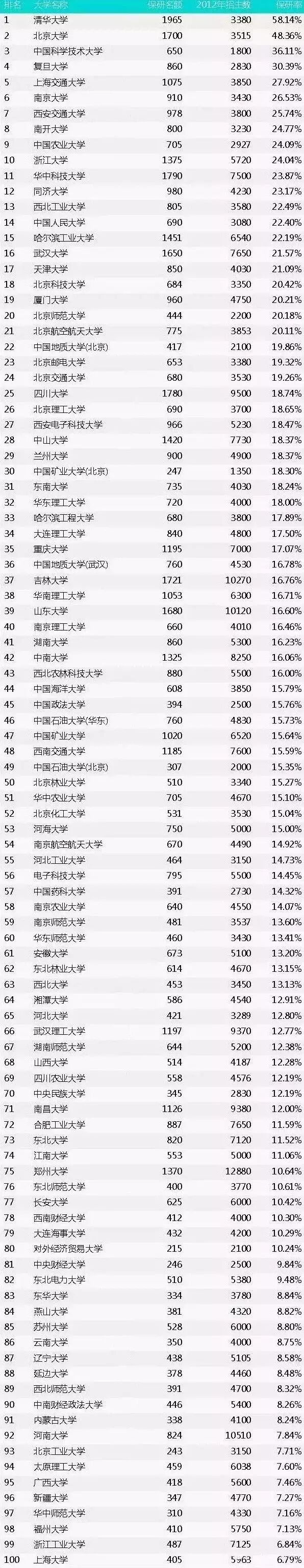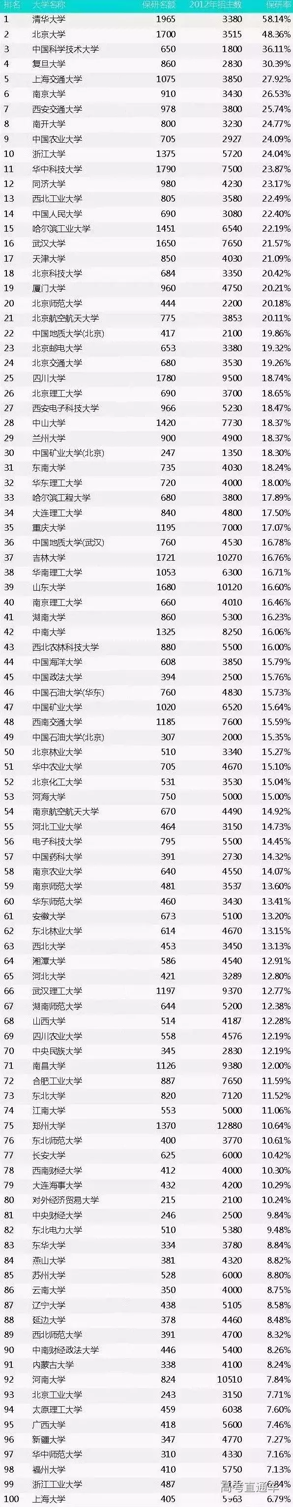 相比于地方院校而言,名校的保研率基本都超高。