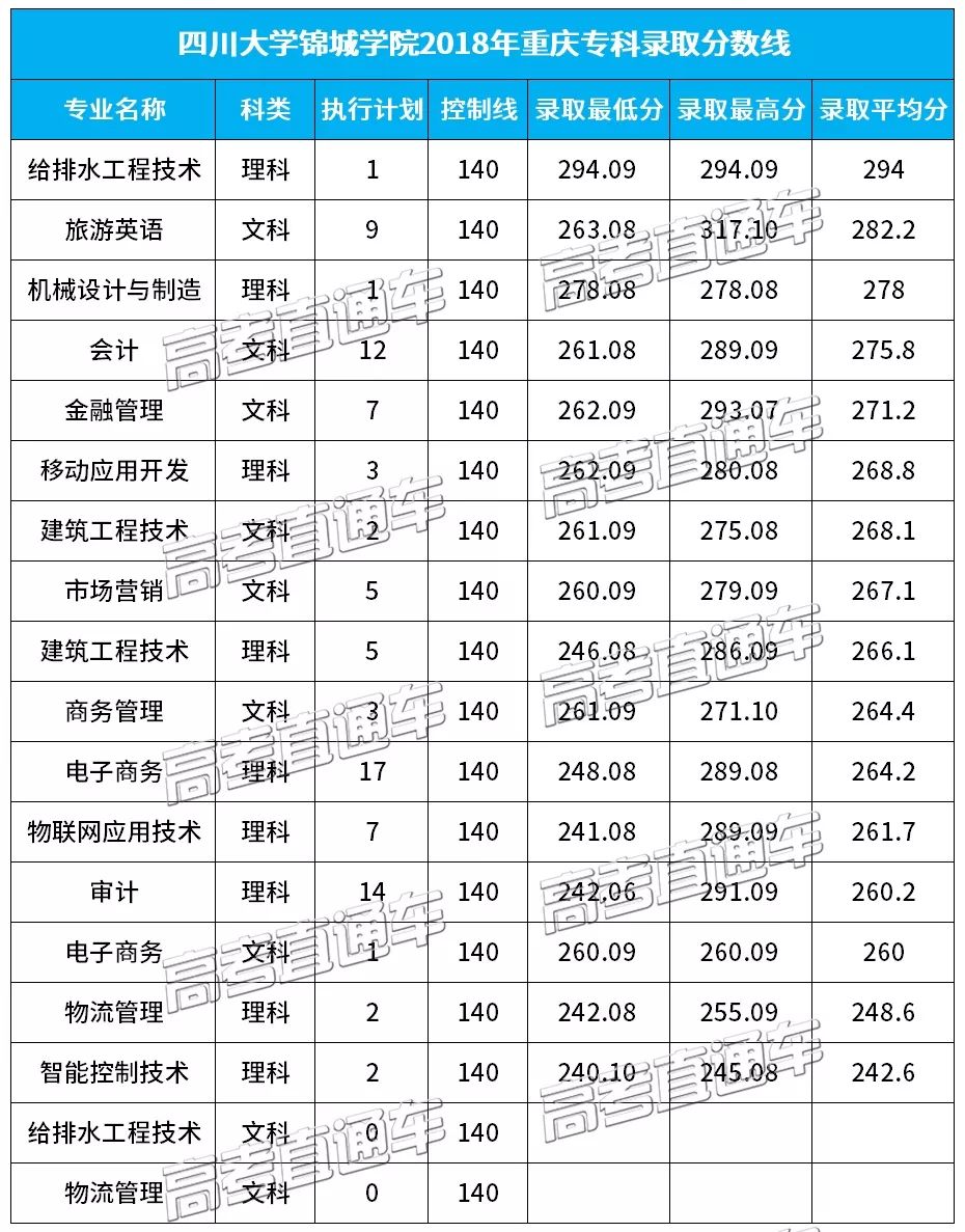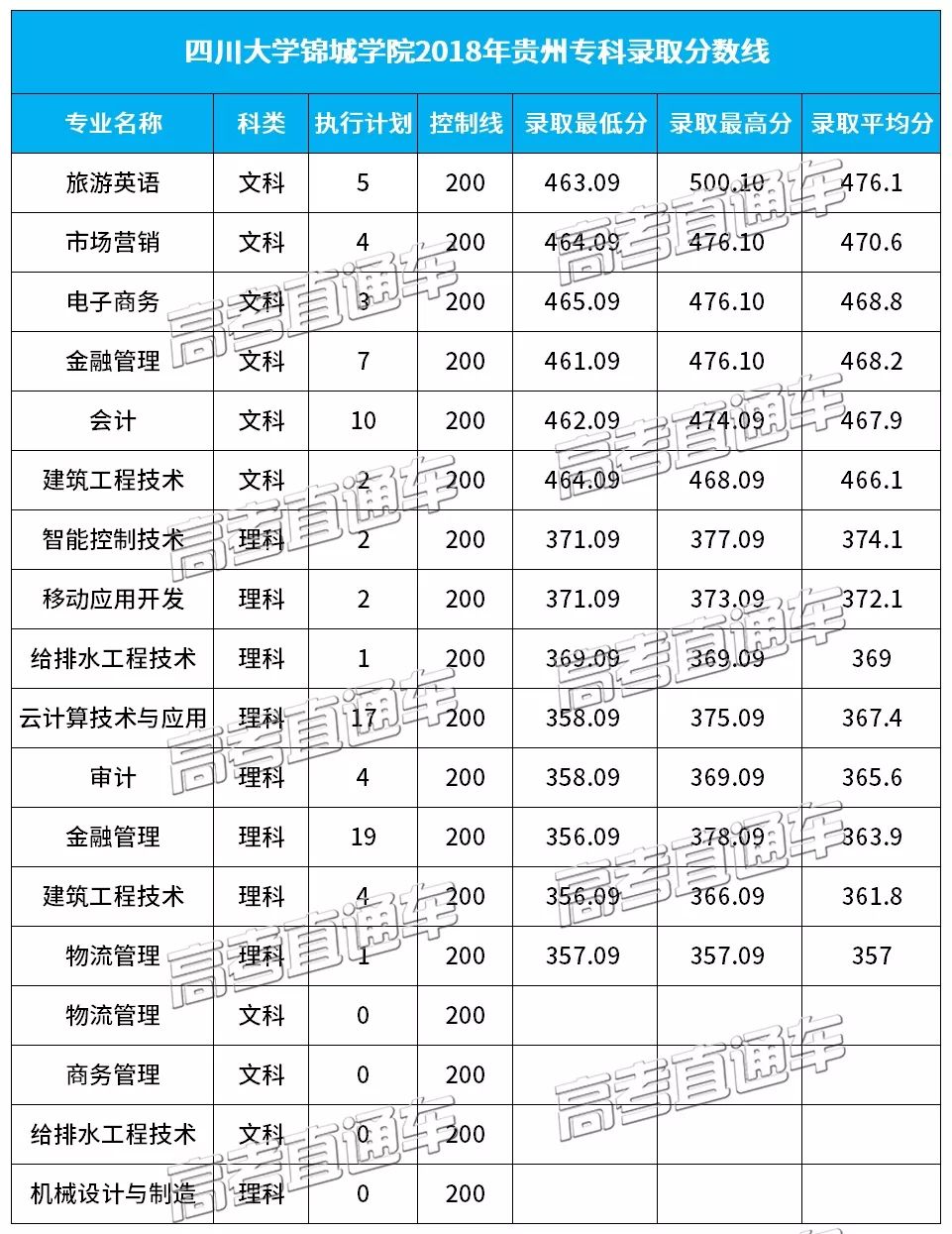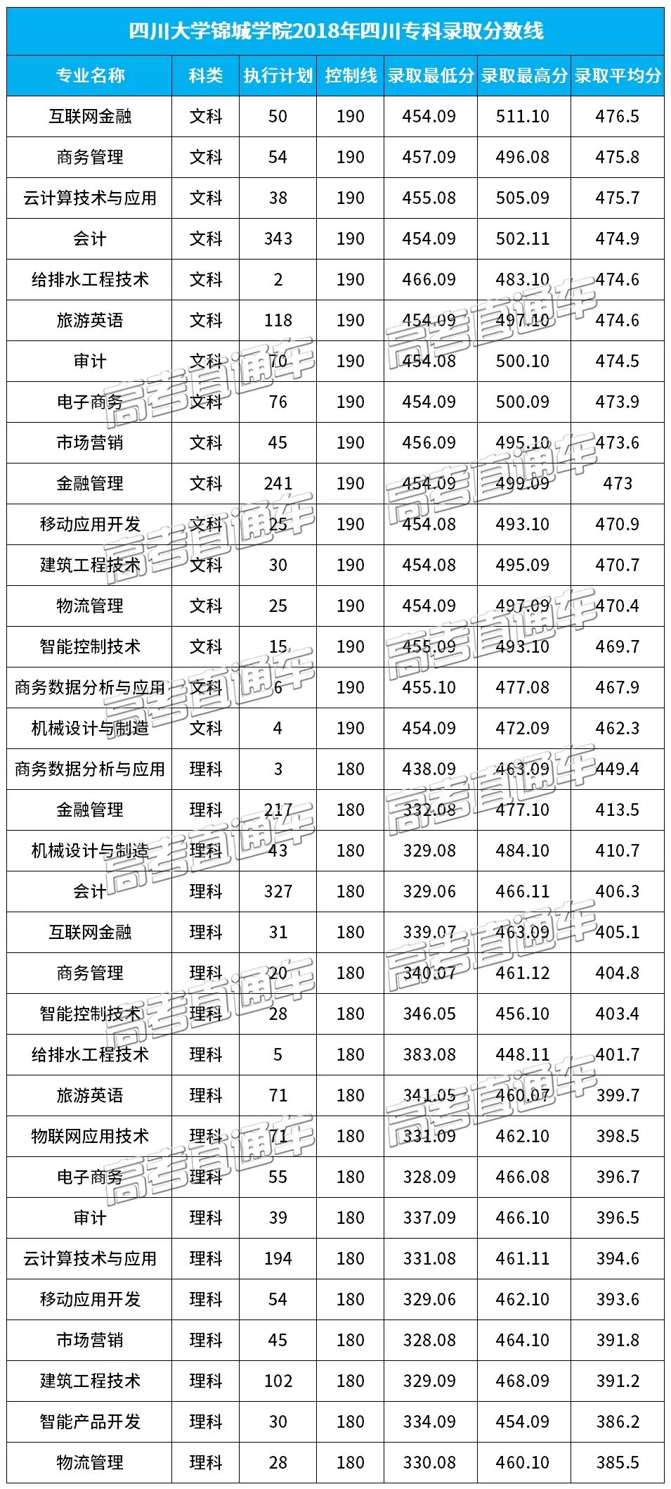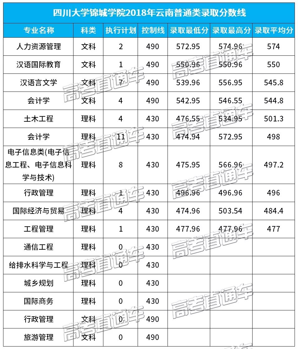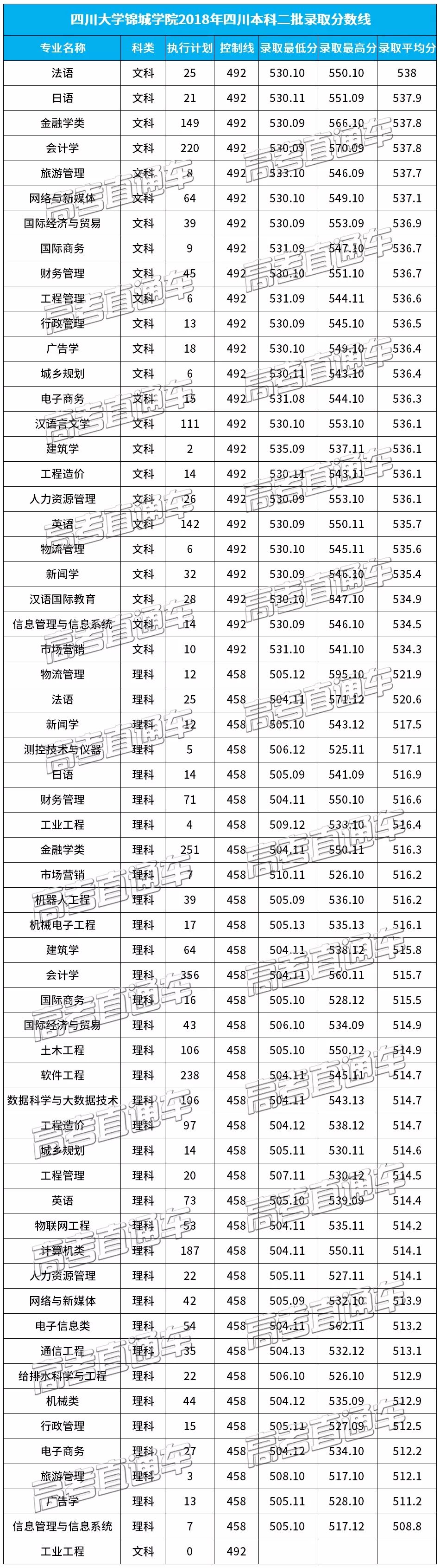 下面我们来看一下四川大学锦城学院2018年在西南各个省市的分专业录取吧。