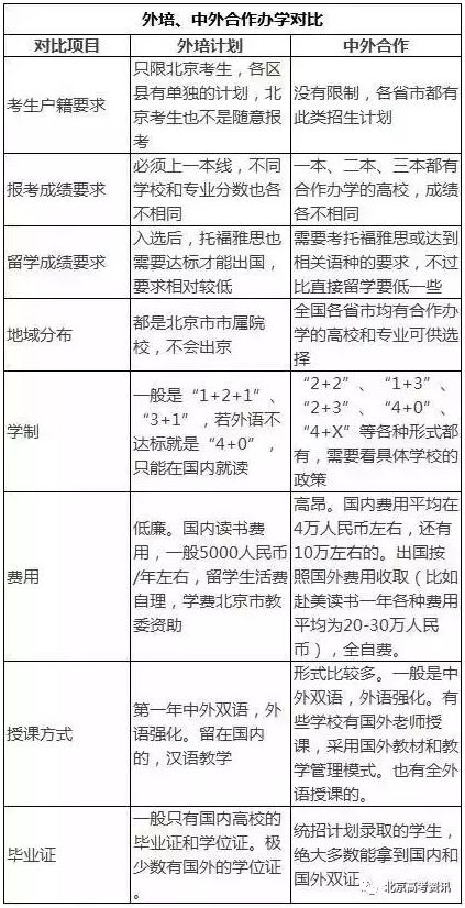 双培、外培计划高校名单: