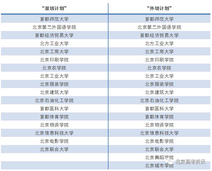 “双培计划”和“外培计划”招生是北京市实施的高校招生形式。