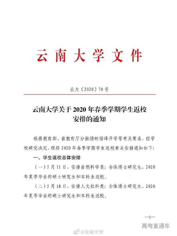 (一)大四学生:省内学生5月9日返校,省外学生5月10日返校;5月11日正式上课。