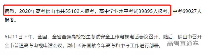 据“高明发布”的最新消息,2020年高考佛山市共55102人报考,高中学业水平考试39895人报考
