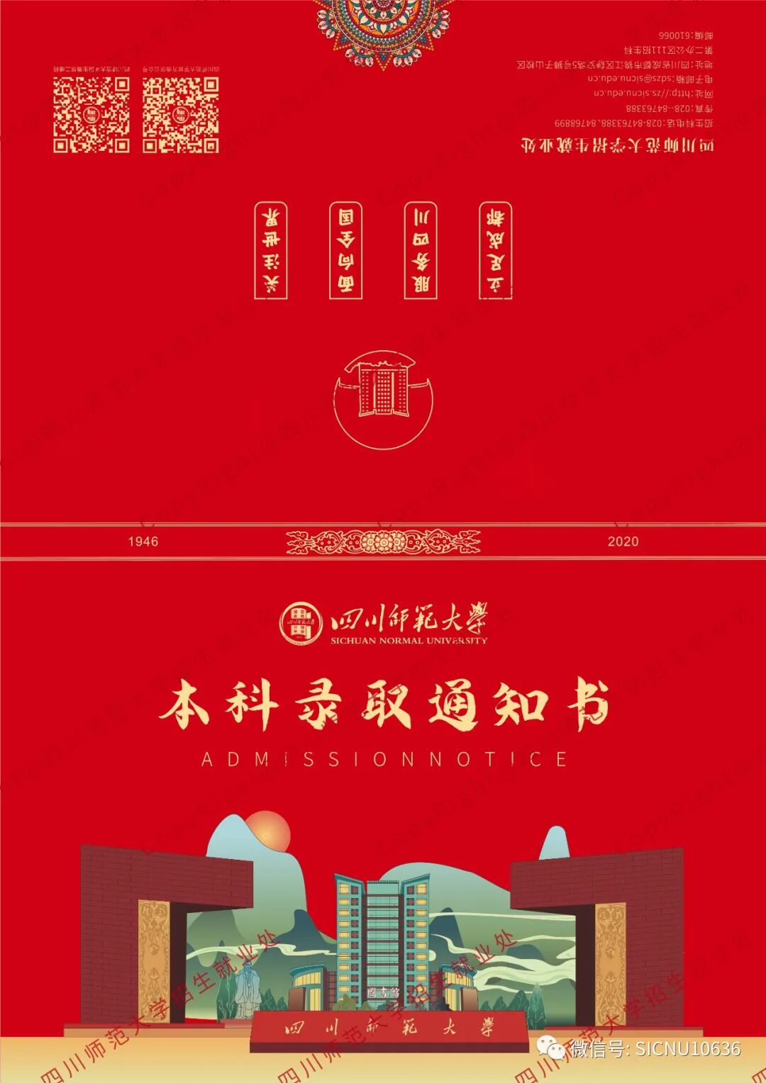 校领导寄语我校肇自白山黑水,抗日烽火中流徙大江南北,崛起川中迄今已阅七十四载。惟其与国家共历寇难,辗转艰辛,又滋养于巴山蜀水,故能养成“重德、博学、务实、尚美”之校训、“求真务实、追求卓越”之大学精神。你自接此通知入校报到,即为本校之一员。“忠于国家,服务人民;尊敬师长,报效父母;激发潜能,彰显个性;崇尚学术,情趣高雅”,当铭记在心,须臾不忘,将自己培养成民族复兴大任的担当者。校党委书记:李向成 校长:汪明义二〇二〇年八月