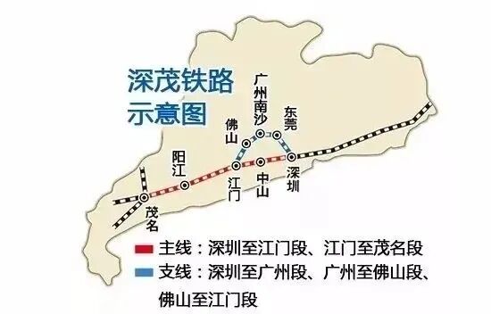 深茂铁路深江段车站从东向西依次是:西丽站—深圳机场站—滨海湾站(站名待定)—南沙站(站名待定)—中山北站—横栏站(站名待定)—江门站。