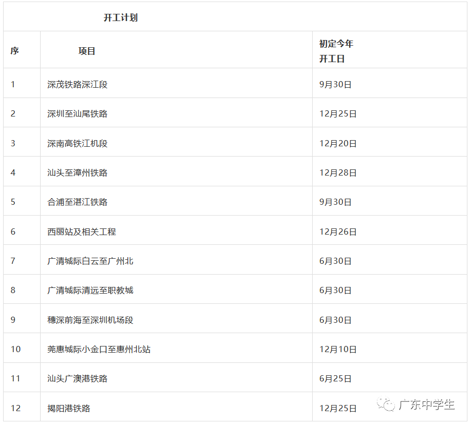 好消息!广东省2020铁路计划来了!2020年6-12月广东省将有12条铁路密集开工,沿线高校的小伙伴们有福啦!以后寒暑假开学坐高铁那是相当的方便。来看看是哪些铁路计划,有没有在你学校附近的。
