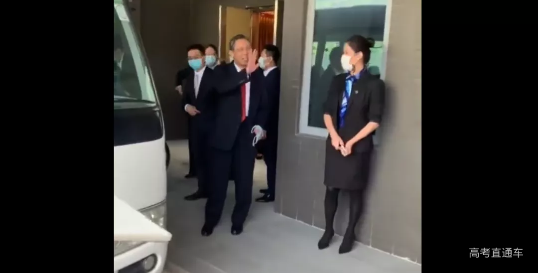 钟南山则与学生们挥手致意。